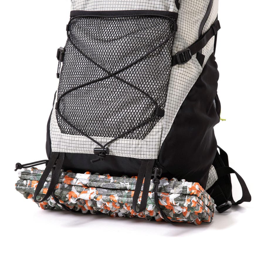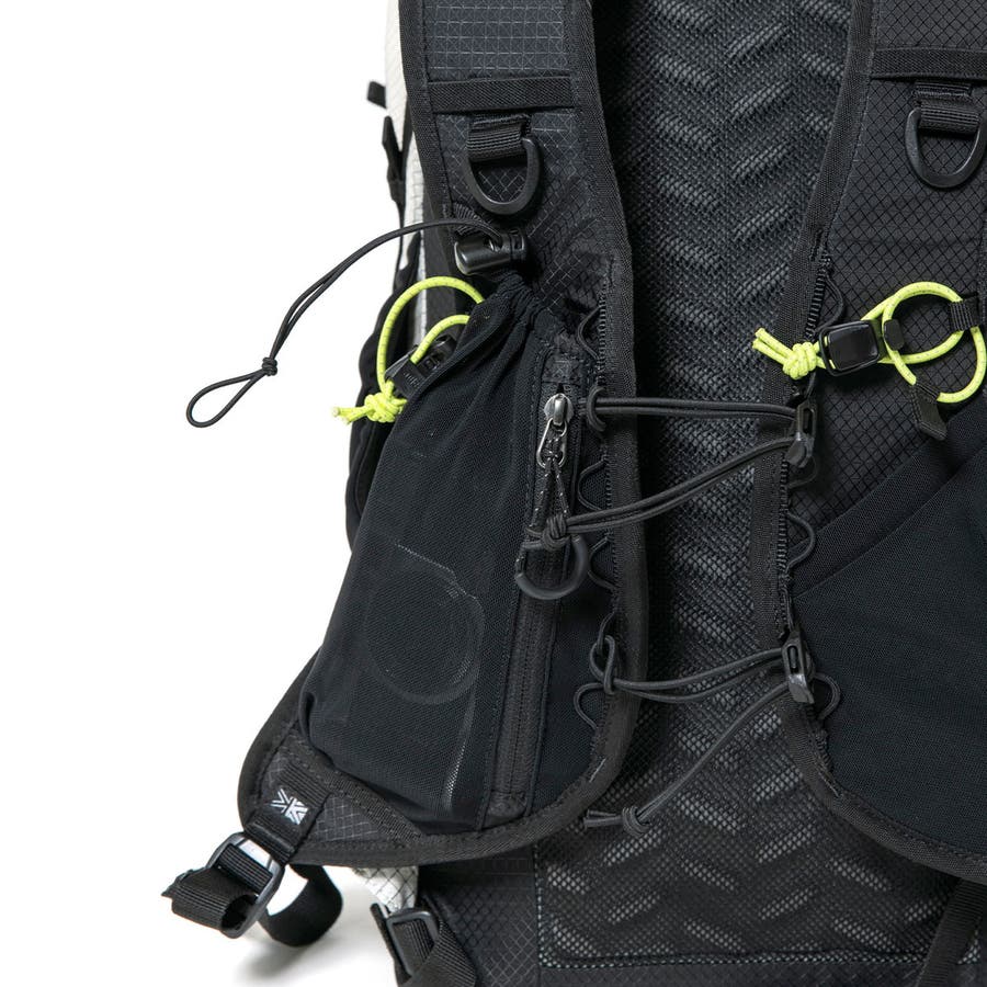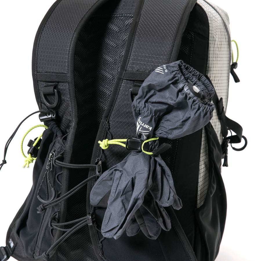 アタッチメントループには、お手持ちのトレッキングポールを一時的に取り付けることができます。伸ばした状態で付けられるため、岩場などのポールを使用しない場面に便利。ポールだけでなく、グローブやタオルなどの小物を取り付けることもできます。