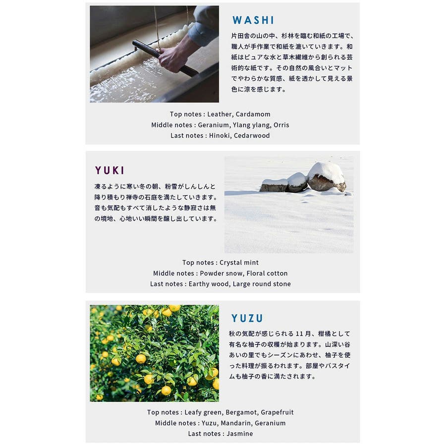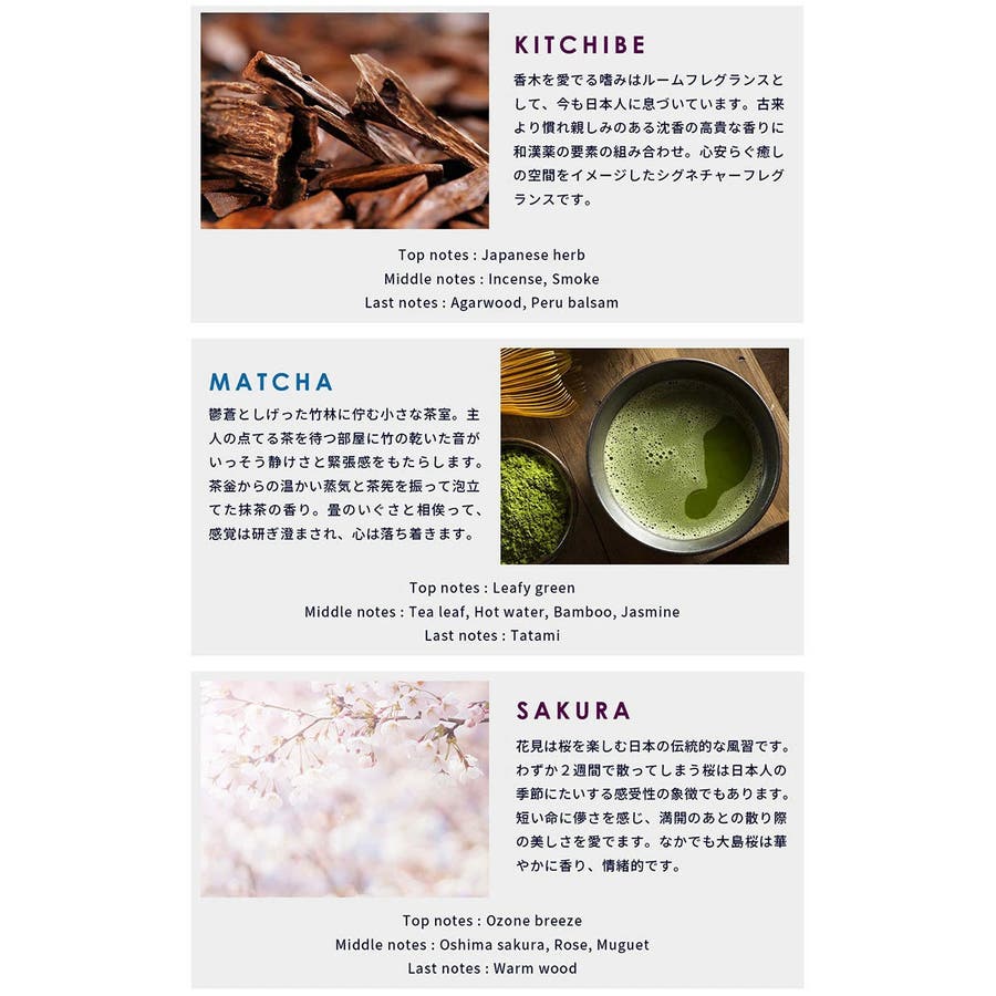 | カラー | SAKURA / AKAFUJI / IKEBANA / KARESANSUI / KICHIBE / MATCHA / WASHI / YUKI / YUZU |