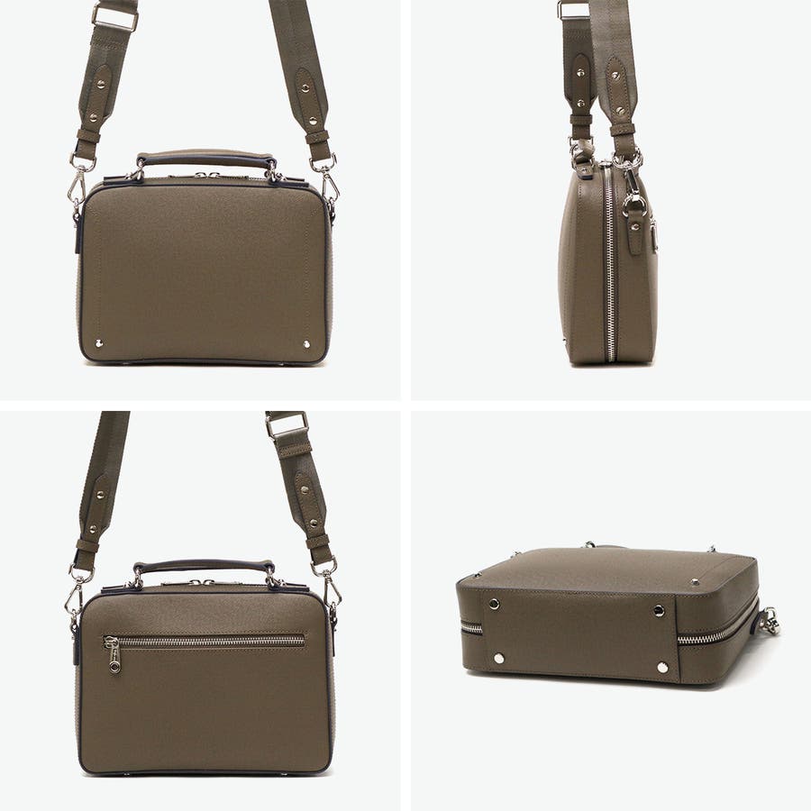 手間のかかるポストミシンを駆使することで、立体的なフォルムで仕上げた『Sottile/ソッティーレ』シリーズの Box2wayミニショルダー。落ち着いたカラーリングと手軽に持ち運べるサイズ感が魅力。ストラップを外せばフォーマルなハンドバッグとしてもお使いいただけます。ビジネスシーンから休日のおでかけまで幅広くマッチするデザインになっています。