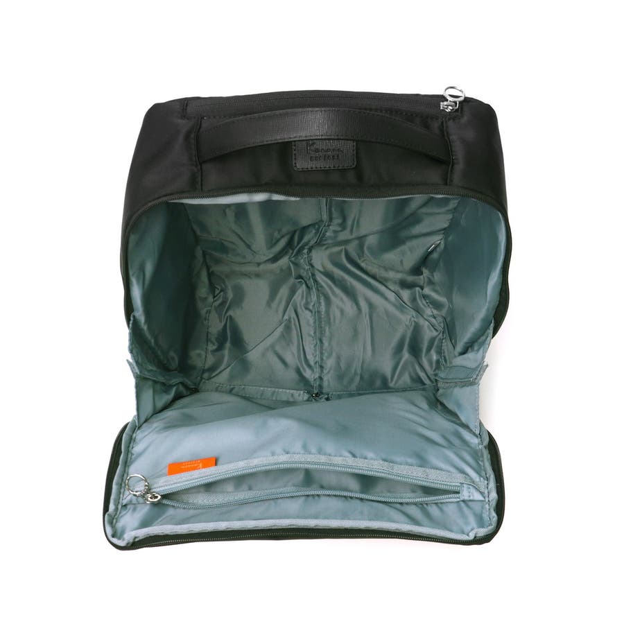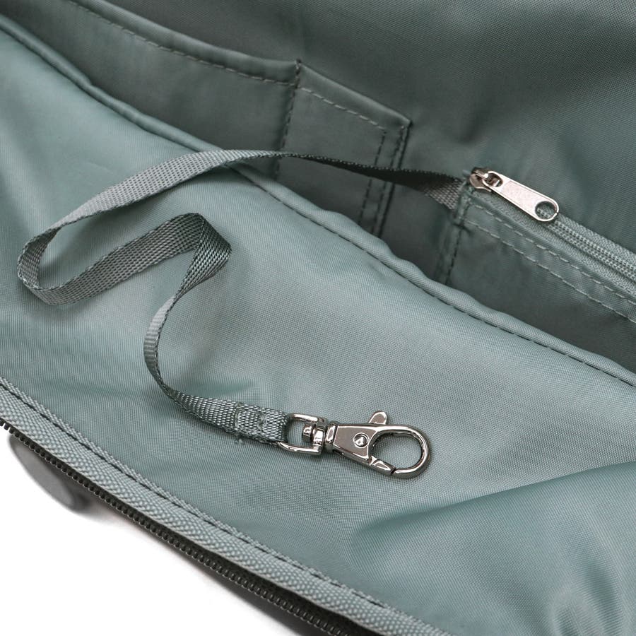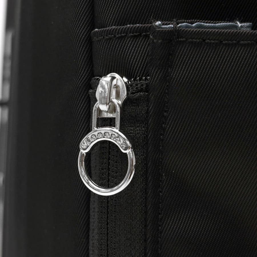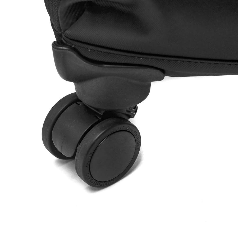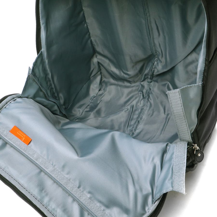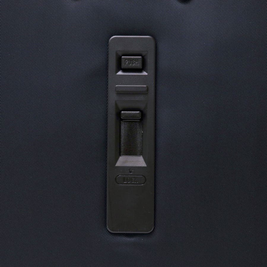 本体にはツイル生地を使用し、肌触りも滑らかで絶妙な光沢感が上品な印象を与えます。テフロン加工、PU加工を施しているので撥水・撥油性能に優れ、お手入れも簡単。メインファスナーは大きく開くダブルジップ仕様かつ、付属のTSA南京錠を取り付けることができてセキュリティ面も安心です。外側にはポケットが充実しているので使い勝手が良く、バッグ感覚で小物を整理できます。また、使わない際にしまっておける格納式のキャリーバーや、ワンタッチで車輪を固定できるキャスターストッパーも便利なポイントです。