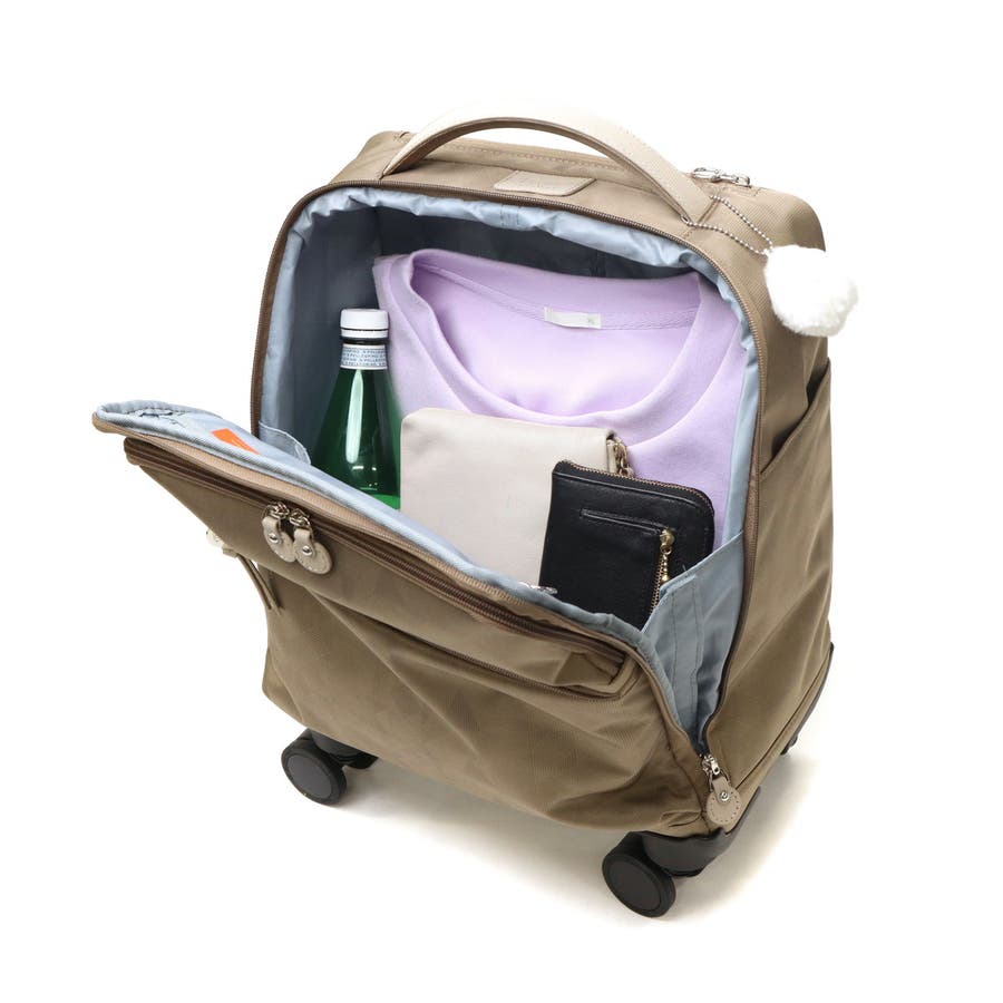 お出かけに嬉しい充実した機能が魅力の『カナナマイトローリー』シリーズより、リミテッドデザインが登場。こちらは、日常使いにもぴったりな、上品で可愛い18Lソフトキャリーです。機内持ち込み対応の軽量ボディに、静音ダブルキャスター&ストッパー付きで快適移動をサポートします。