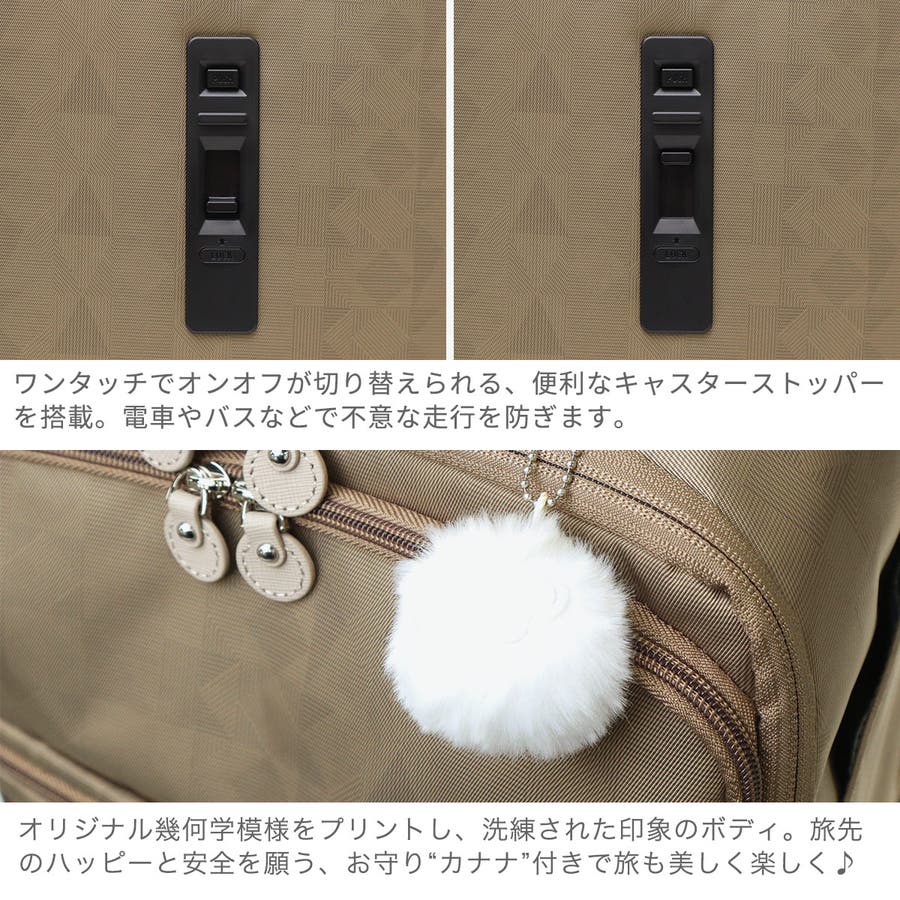 ・エキスパンダブル機能付きの製品は、マチ拡張時の3辺の和が機内持ち込みサイズ、預け入れ無料サイズを超える場合がございます。また、航空会社や飛行機の機種などによって規定が異なりますので、予めご確認の上お求めください。