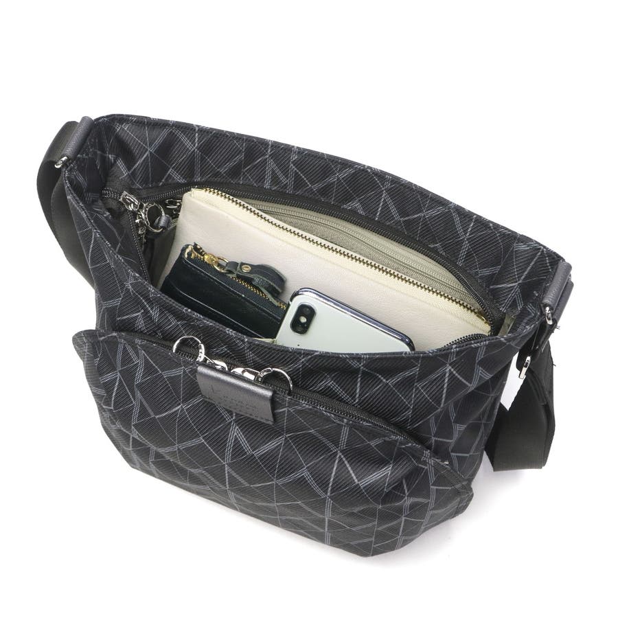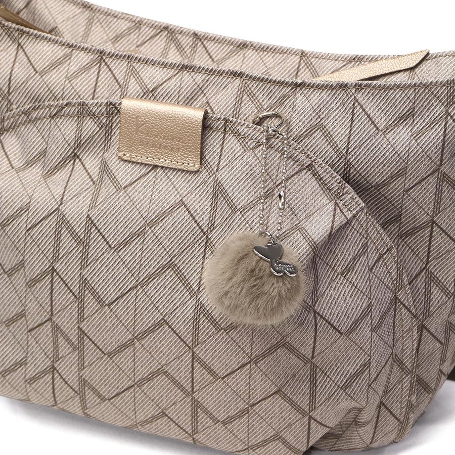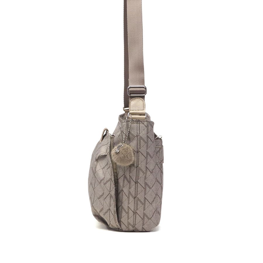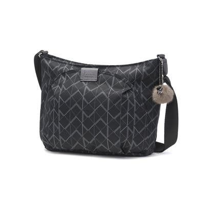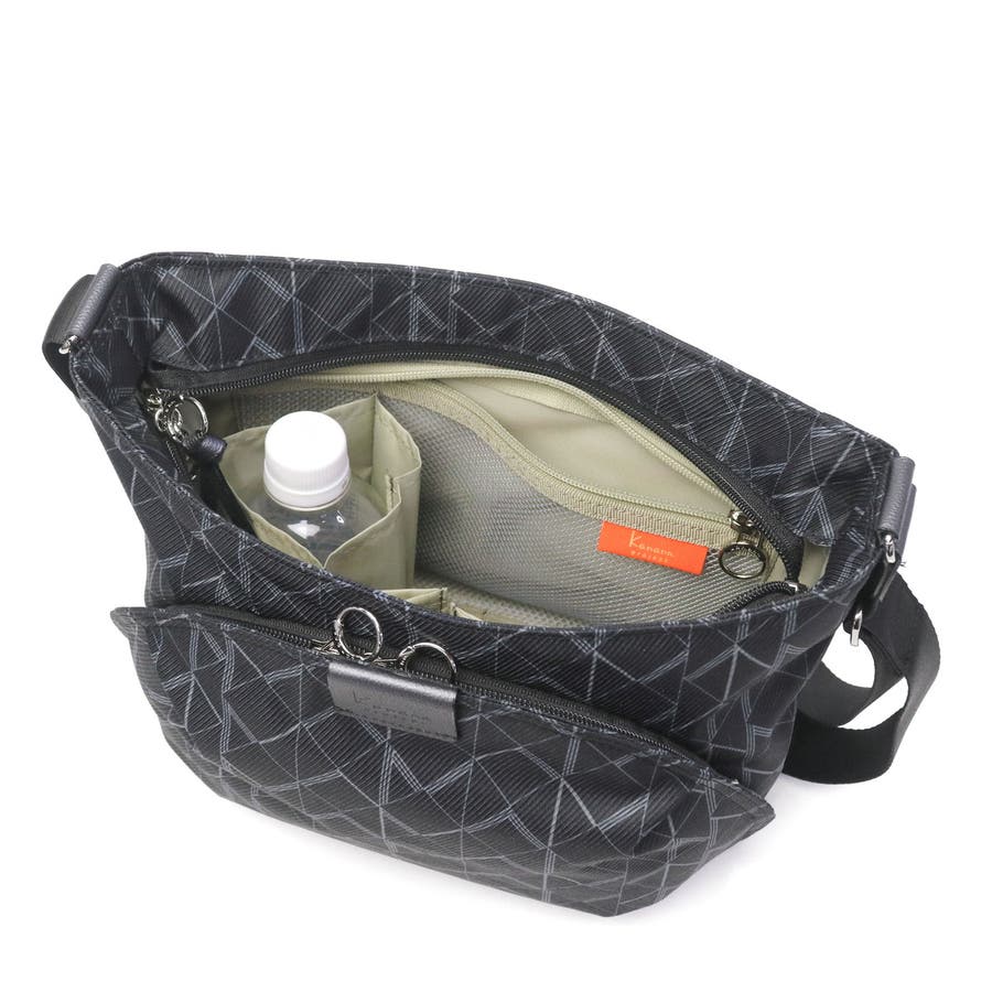 丸みのあるフォルムのフロントポケットが印象的な軽量バッグシリーズ「カナナモノグラムシェードバッグ/KM-2」のショルダーバッグ。カナナモノグラムパターンを軽やかな線で表現したプリント素材を採用しており、Kananaらしさが際立つユニークで新鮮なデザインに仕上がっています。