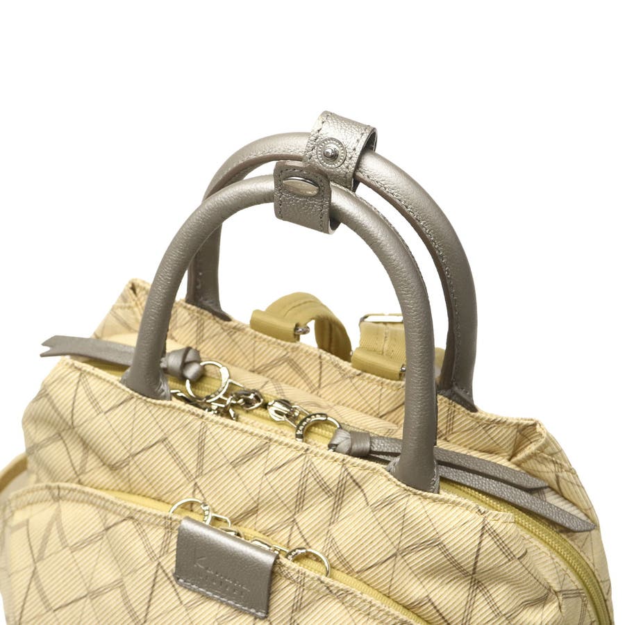丸みのあるフォルムのフロントポケットが印象的な軽量バッグシリーズ「カナナモノグラムシェードバッグ/KM-2」のリュック。カナナモノグラムパターンを軽やかな線で表現したプリント素材を採用しており、Kananaらしさが際立つユニークで新鮮なデザインに仕上がっています。