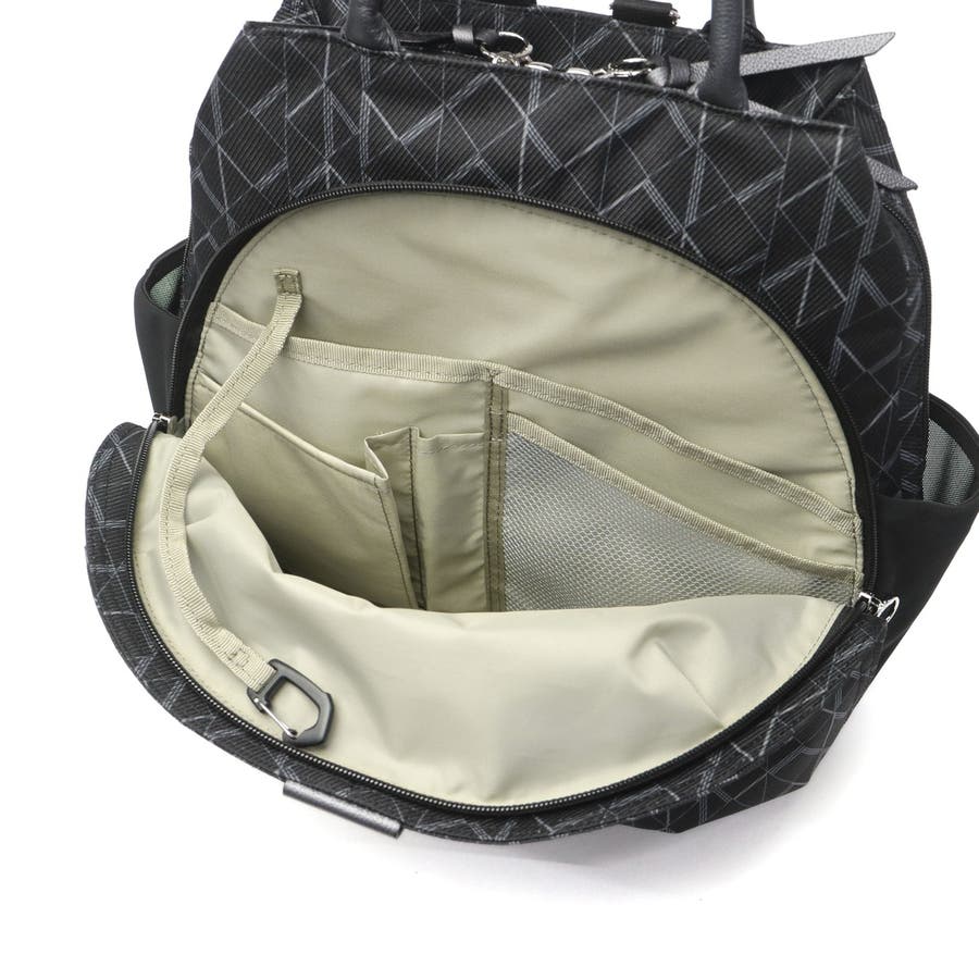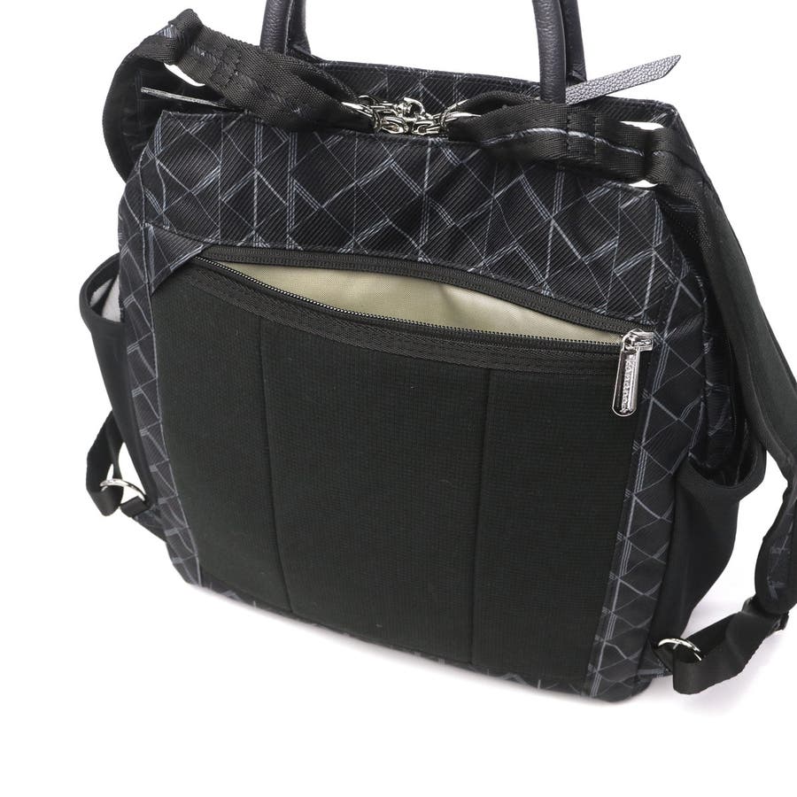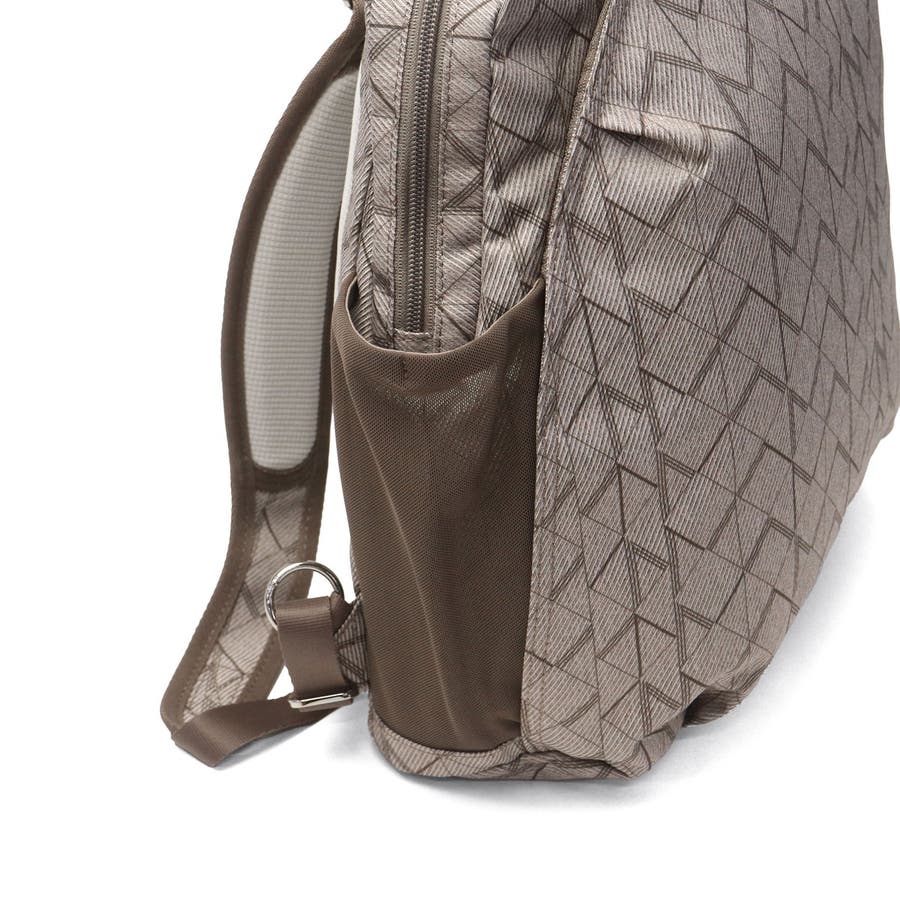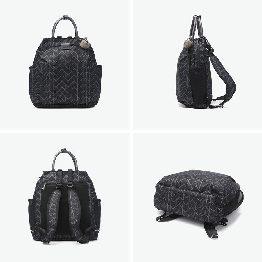 使い勝手の良い大きな外ポケットが特徴的な軽量バッグシリーズ「カナナモノグラムシェードバッグ/KM-2」のリュック。カナナモノグラムパターンを軽やかな線で表現したプリント素材を採用しており、Kananaらしさが際立つユニークで新鮮なデザインに仕上がっています。