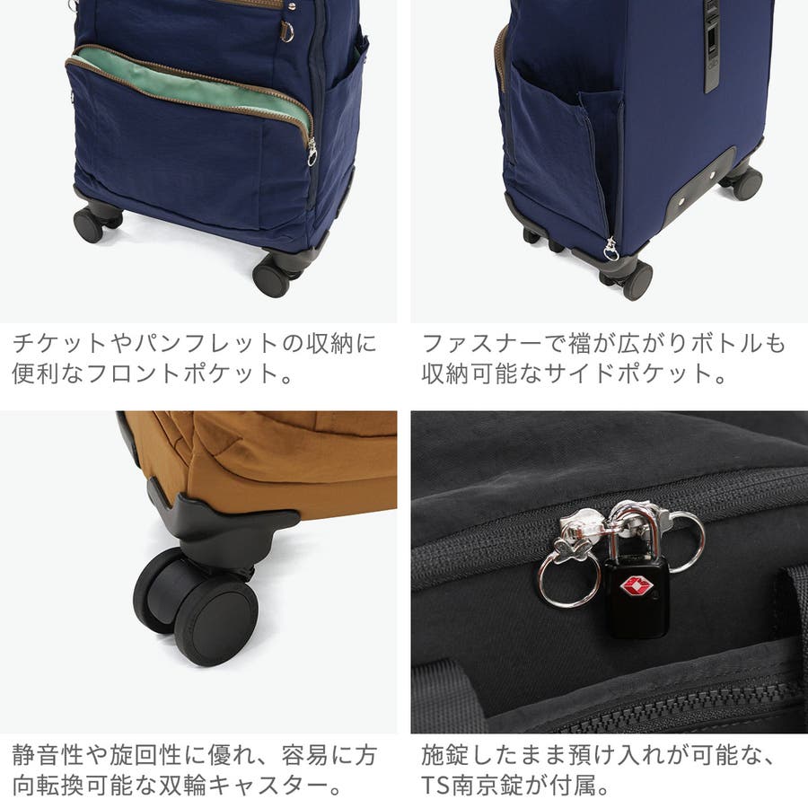 ・エキスパンダブル機能付きの製品は、マチ拡張時の3辺の和が機内持ち込みサイズ、預け入れ無料サイズを超える場合がございます。また、航空会社や飛行機の機種などによって規定が異なりますので、予めご確認の上お求めください。