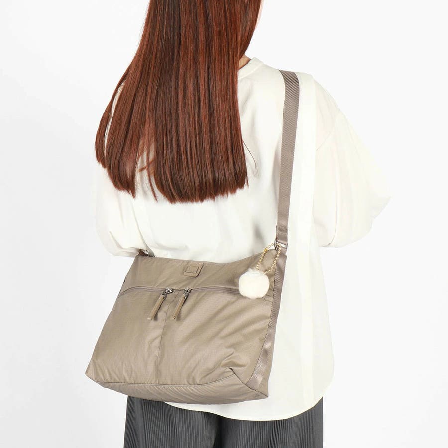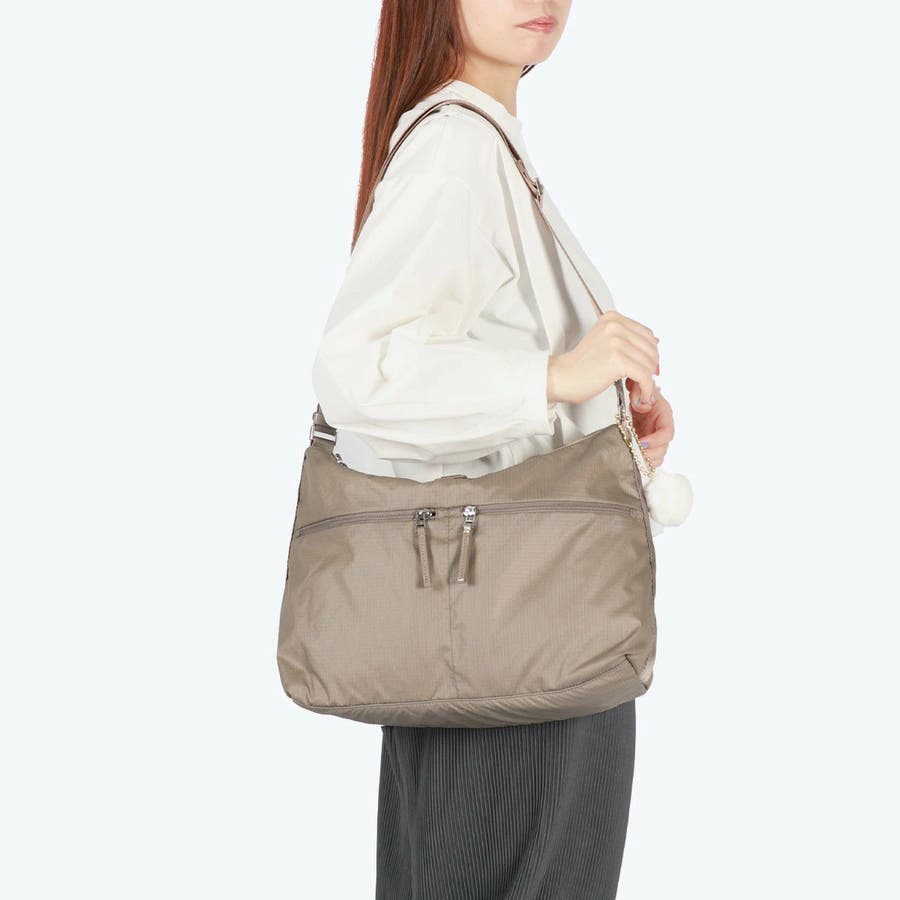 | 荷物が多くても安心! お出かけの相棒に デイリー使いからトラベルまで幅広く活躍するバッグシリーズ『ルフレ』のショルダーバッグ。きれいめなスタイルにも合わせやすい、上品な光沢感のある素材を使用したとても軽量なアイテムです。小物類の仕分けに便利な収納スペースと、旅先にちょうどよく大きすぎないサイズ感が魅力です。 |