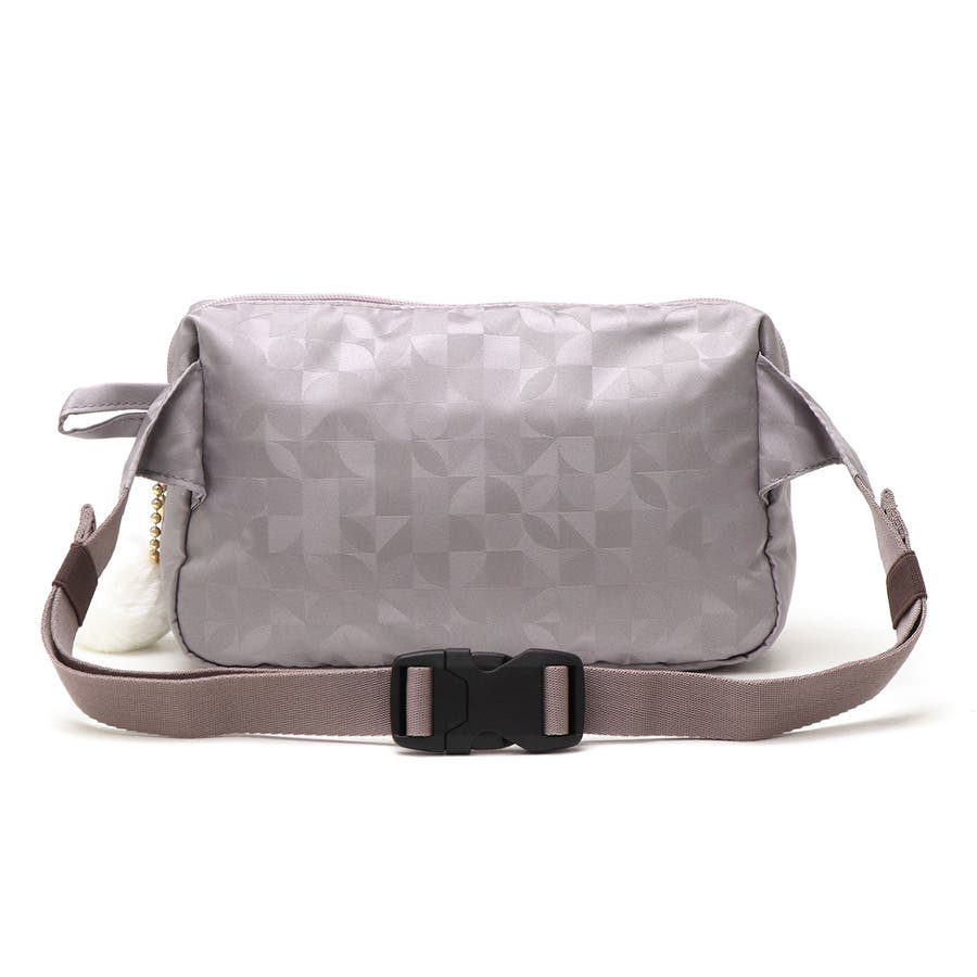 Kananaロゴをオリジナルにアレンジした柄を、上品なジャガード織で仕立てたウエストバッグ。前ポケットのメタルファスナーと揺れるチャームがとてもエレガントな印象です。様々なポケットを搭載し、デイリーからトラベルまでフレキシブルにお使いいただけます。