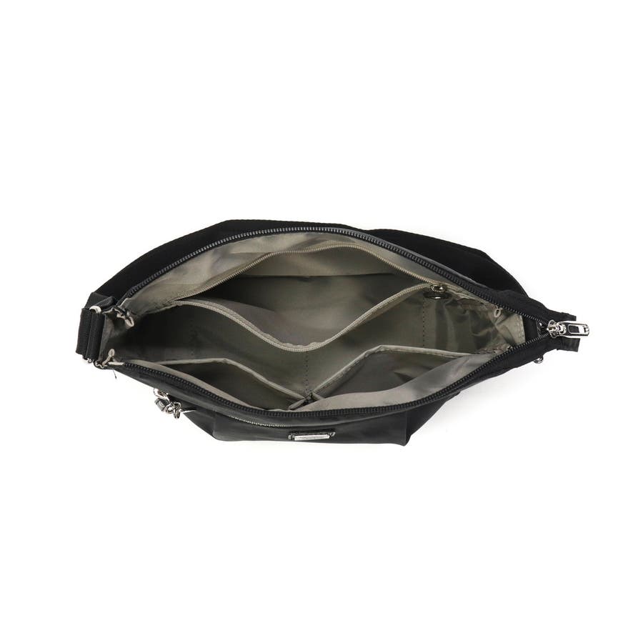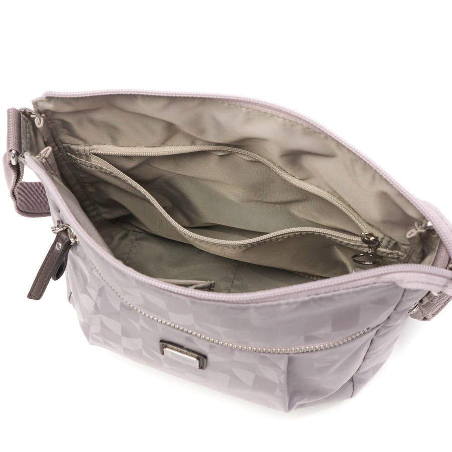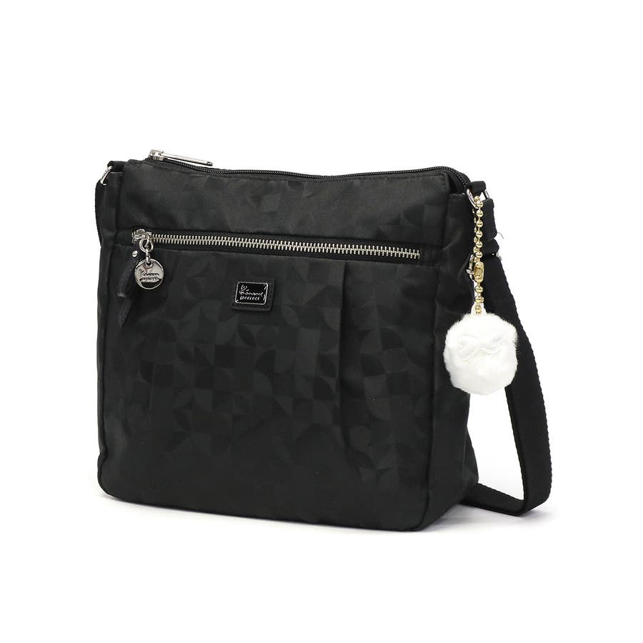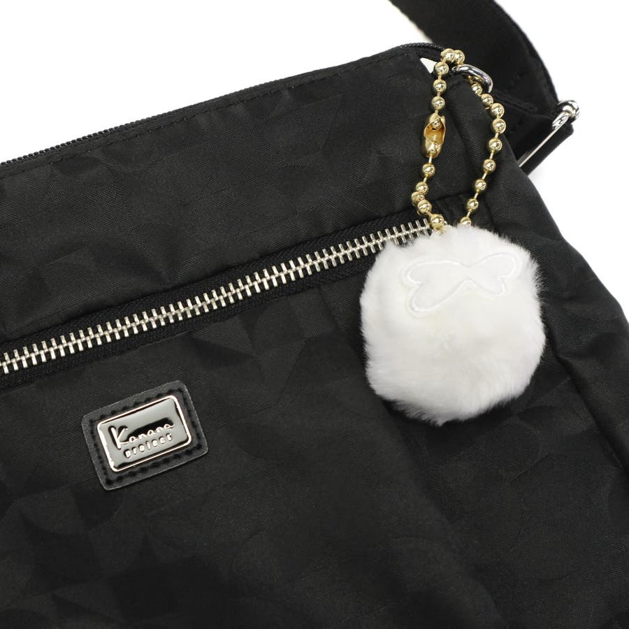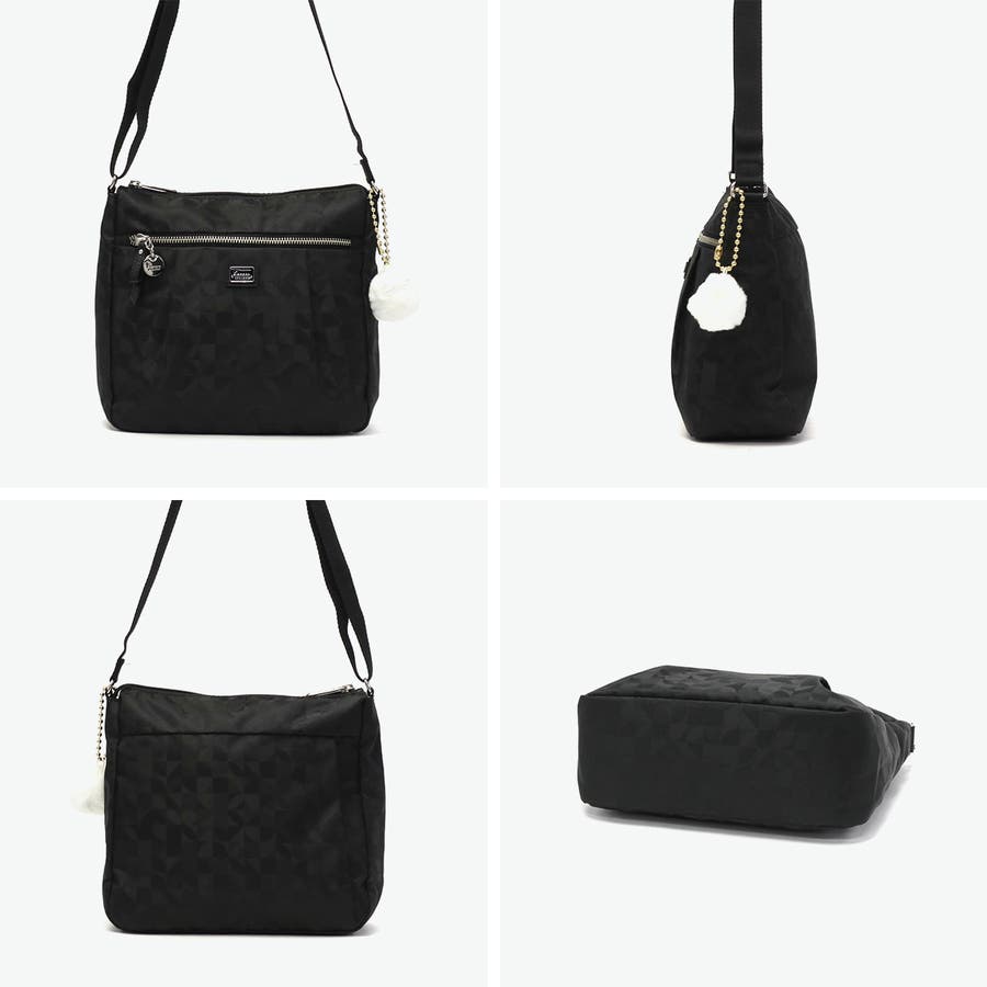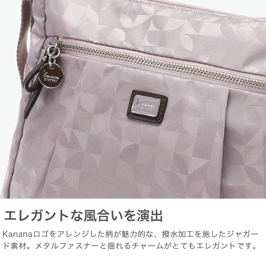 Kananaロゴをオリジナルにアレンジした柄を、上品なジャガード織で仕立てたショルダーバッグ。きらりと光るメタルファスナーと揺れるチャームが、大人かわいいエレガントな印象を演出します。軽量でコンパクトながらA5サイズがしっかり収まり、多彩なポケット付きでデイリーからトラベルまで幅広く活躍できます。