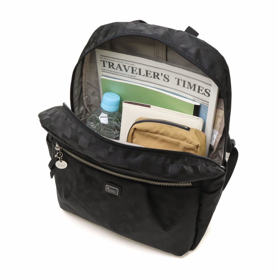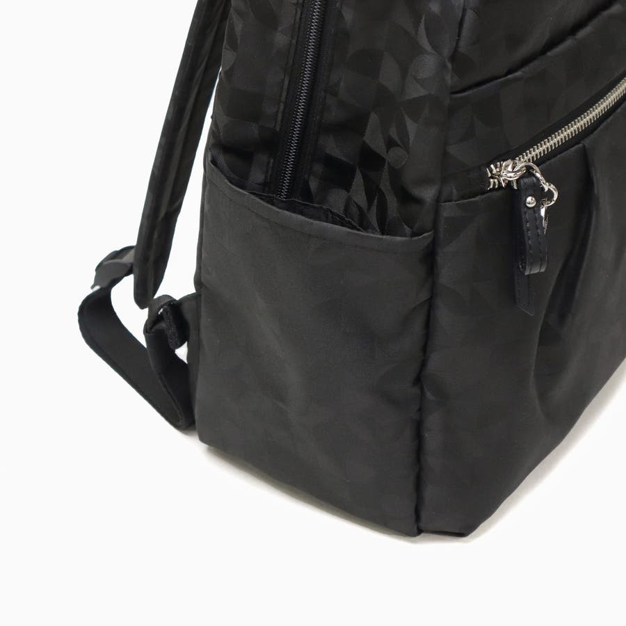 Kananaロゴをオリジナルにアレンジした柄を、上品なジャガード織で仕立てたリュックサック。前ポケットのメタルファスナーと揺れるチャームがとてもエレガントな印象です。軽量でコンパクトな見た目ながら収納力も抜群で、デイリーからトラベルまで幅広く活躍してくれます。