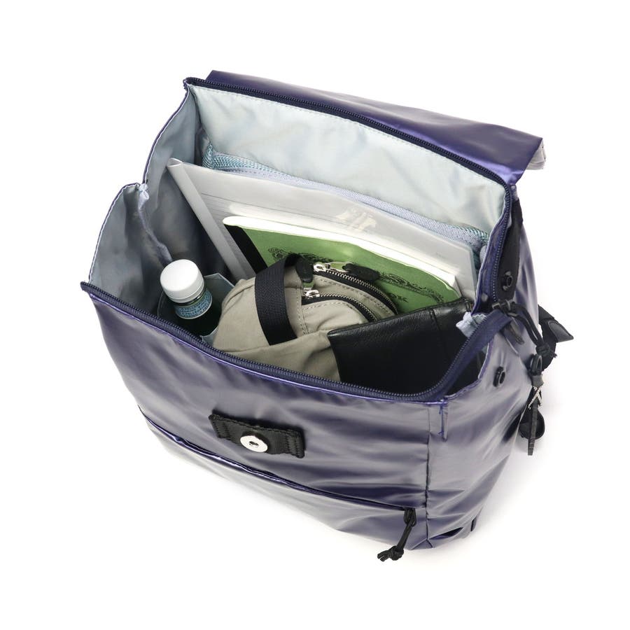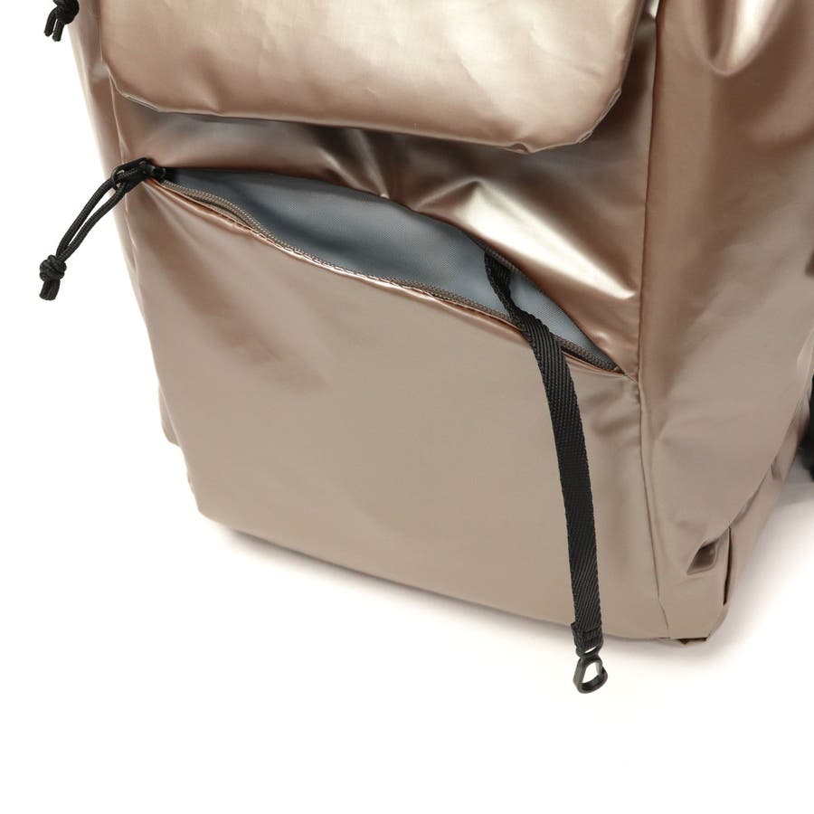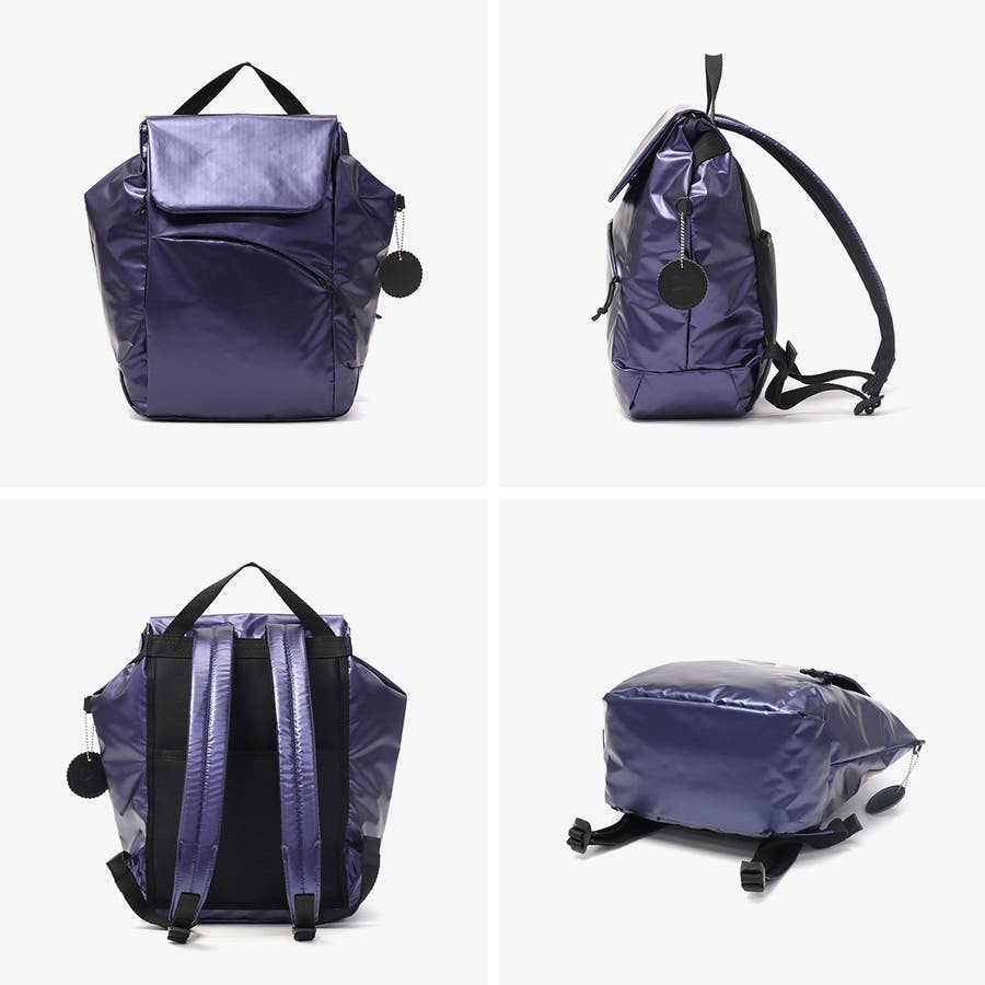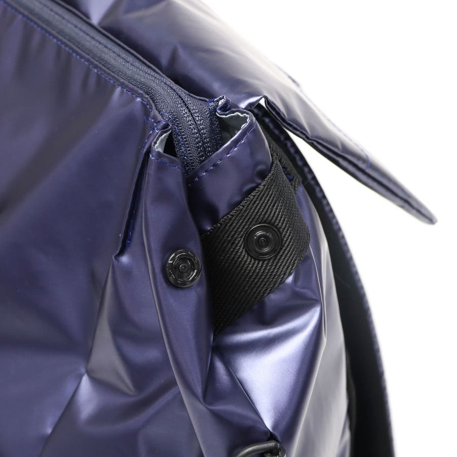 落ち着いたパール感のある素材を用いたカジュアルでシンプルな「ラポシュ/LaPoche」シリーズ。大人のリラックススタイルにフィットしコーディネートのアクセントとなるデザインのリュックです。本体は両サイドのボタンで、スタイルや荷物量に合わせてフォルムを変えて楽しめる変形タイプ。軽量で、雨や汚れに強い素材を使用したデイリー使いしやすいアイテムとなっています。