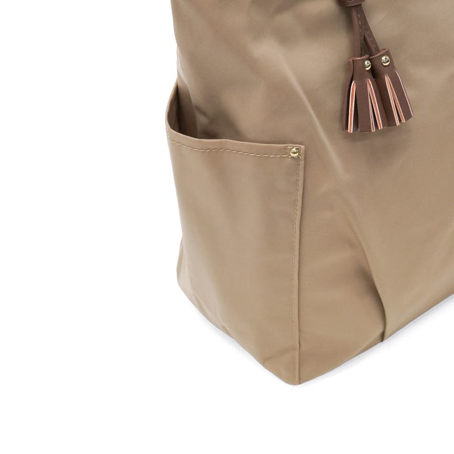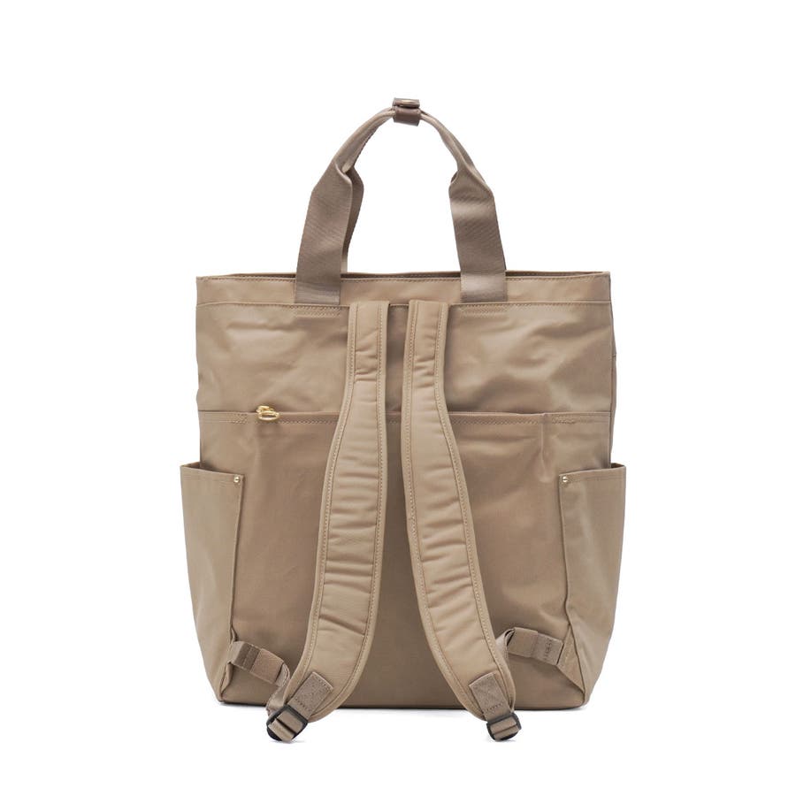 小さなタッセルをあしらったカジュアルバッグシリーズ『タッセル』から登場したトートリュック。ツヤ感ナイロン×フェイクレザーで上品に仕上げ、タック入りのふんわりシルエットが魅力。内装はピンクをベースにした木漏れ日柄で明るい印象。長めのハンドル付きで、シーンに合わせて手持ちでも背負っても使える2WAY仕様。A4サイズ対応で女性でも背負いやすく、ポケットも充実。毎日使いから旅行まで幅広く活躍します。