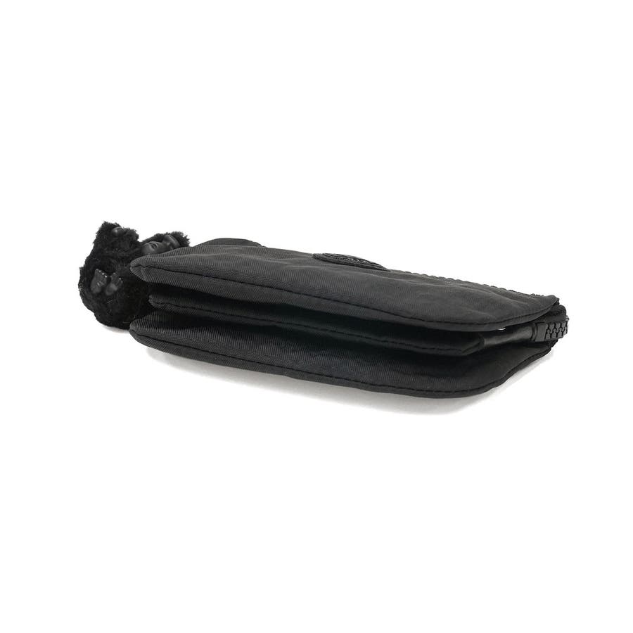 身の回りのちょっとした小物の収納にちょうどいい、コンパクトなミニポーチ。2層式で中央にファスナーポケット、オープンポケット2つを備えているため、鍵やコスメなど外出時の必需品の整理整頓に便利です。シンプルなルックスにキュートなモンキーチャーム付きで、ブランドらしい遊び心が光ります。