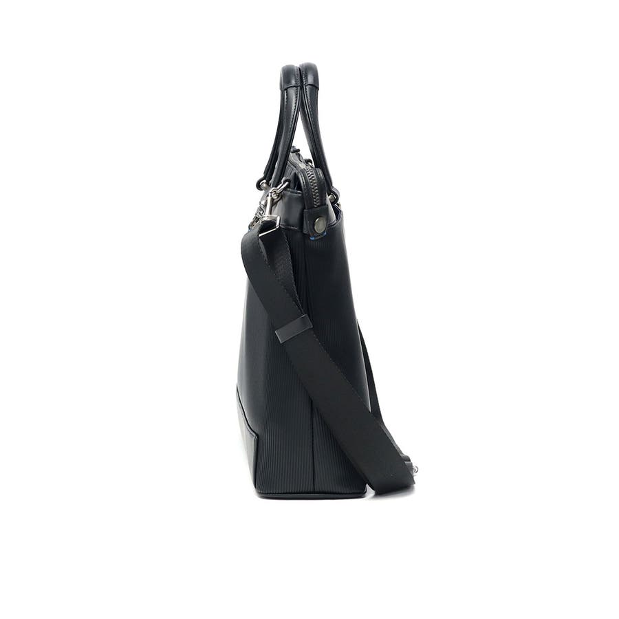 ラバー調の凹凸が特徴的なPVC素材を使用した『バンプ』シリーズのビジネスバッグです。耐水性・耐摩耗性に優れた高強度素材で、機能性とデザイン性を両立。立体感のあるストライプ柄が都会的なビジカジスタイルを引き立てます。B4対応サイズでしっかり荷物が入り、PC収納や多彩なポケットを装備。手持ちと肩がけの2WAY仕様で、通勤から出張までスマートに活躍します。
