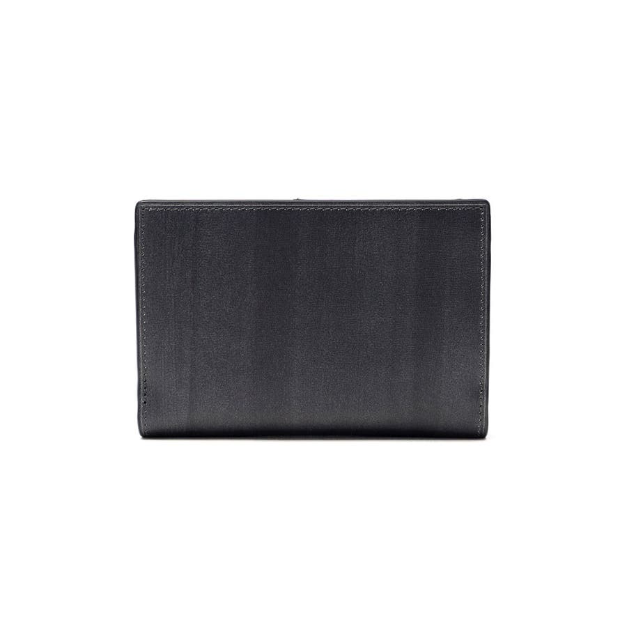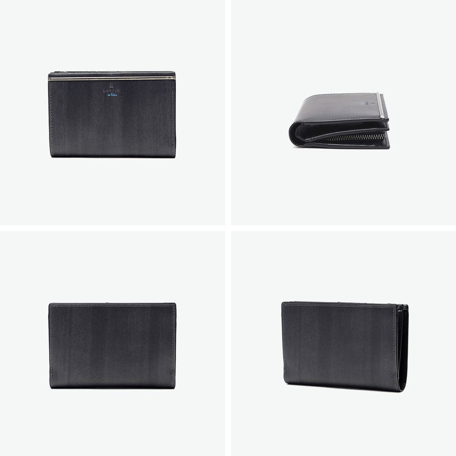 スリガラス・かすれ・まだら・杢等のキーワードから作り上げたオリジナルマテリアルを使用した『レノア』シリーズの二つ折り財布。スタイリッシュで個性的な素材に、メタルバーをアクセントにあしらいました。収納力を備えながらも、シャープな印象ですっきりと仕上げています。