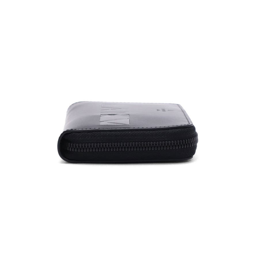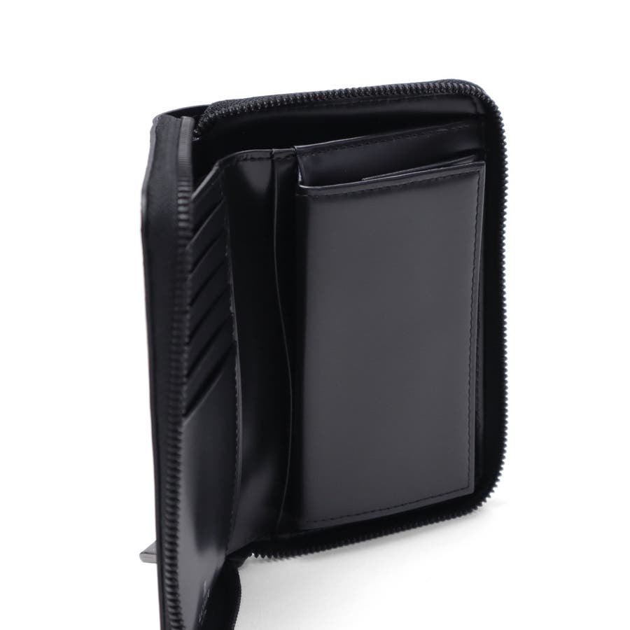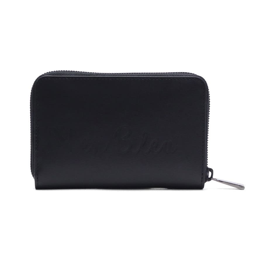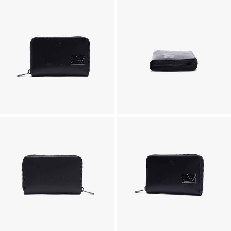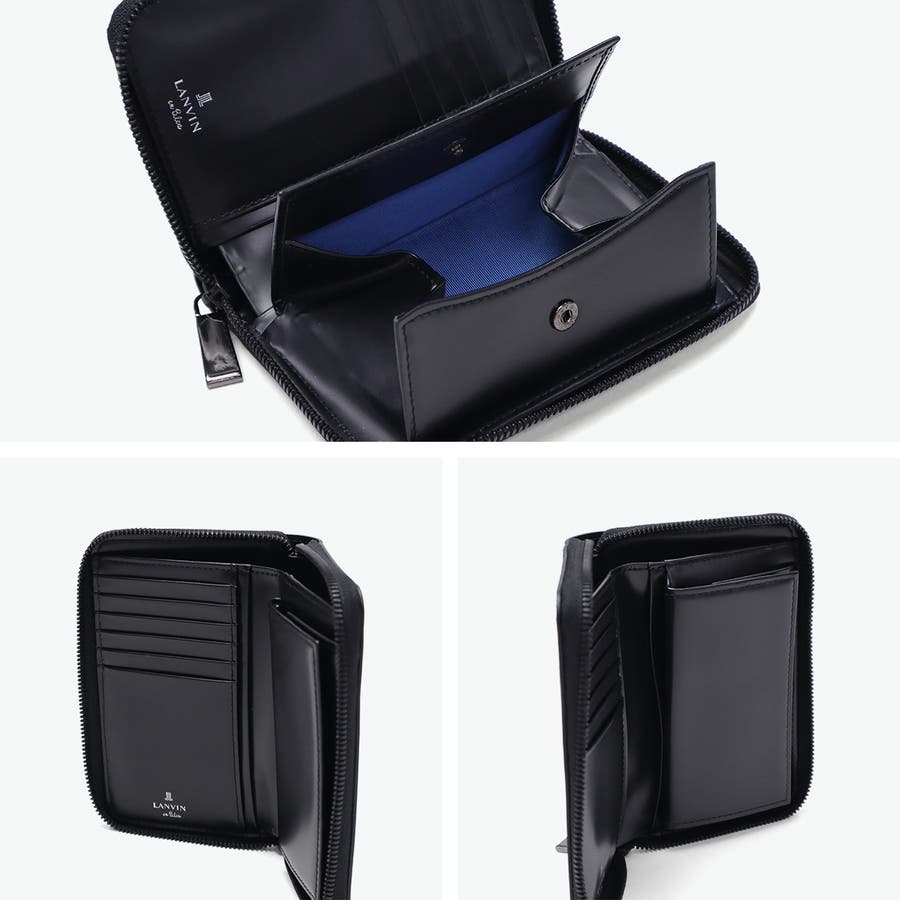 LANVIN en Bleuの楽しさを表現した小物シリーズ『ディアブロ』の二つ折り財布。立体的な型押しロゴと金具プレートと繋がっているように見えるデザインが印象的。ロゴはさらに背面へと回り込み、存在感とデザイン性を際立たせています。素材には細かな型押しが施されているため、傷がつきにくいのも魅力です。
