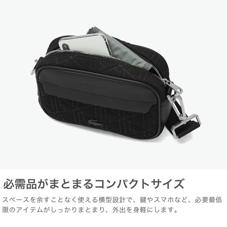 モダンなロゴデザインが際立つスモールレポーターバッグ。スエード調の質感を持たせた素材を使用し、エレガントなLモノグラムパターンのエンボス加工を施しているため、上品な印象に仕上がっています。コンパクトながらも、必需品がしっかりと収まるファスナー付きのメインルームで、外出を身軽に。内装にはポケットやキー用のループを装備しているため実用性も抜群です。