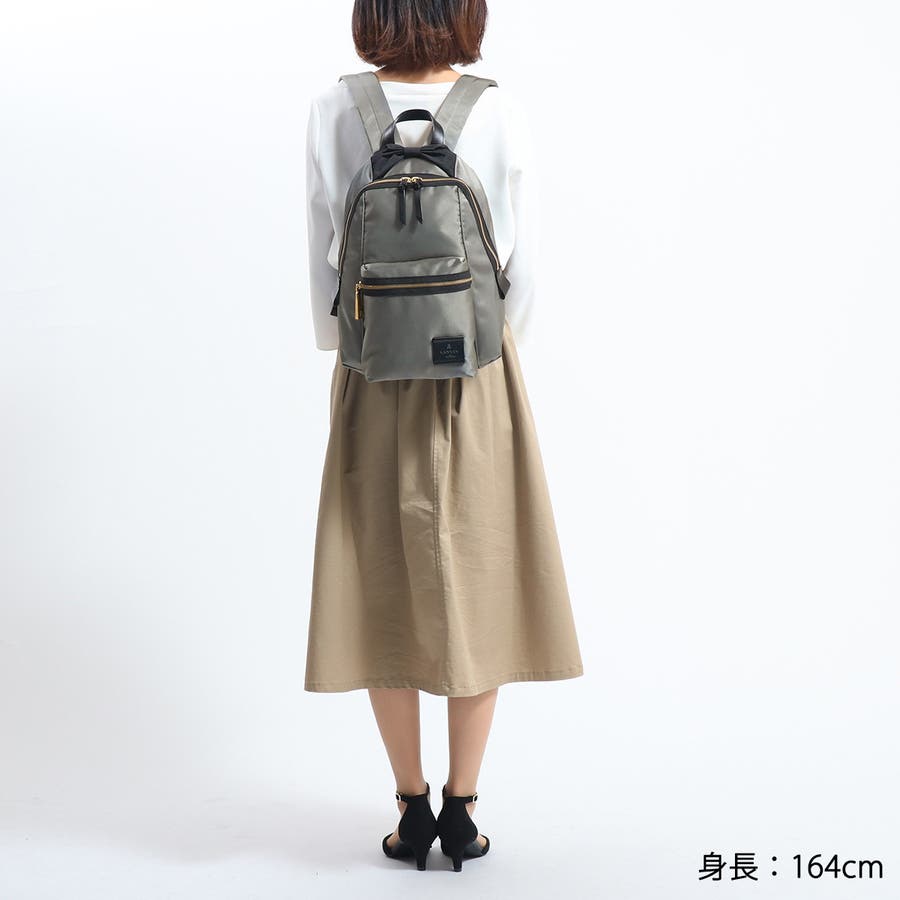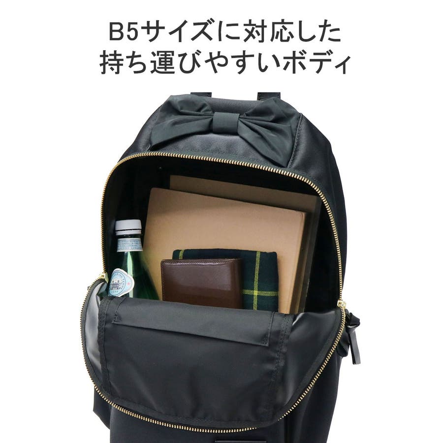 カジュアルな中にもエレガントな気分を忘れない『トロカデロ』シリーズのリュックサック。フロントに大きなリボンモチーフを施すことで、ラブリーにシフト。高級感のあるファスナーや、程よい光沢のあるナイロン素材を使用することで、甘すぎずフェミニンなスタイルにもマッチするアイテムになっています。本体はB5サイズ対応のコンパクトなフォルムで、女性でも背負いやすいサイズ感です。