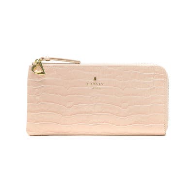 クロコの型押しを上品にエナメルで表現し、ランバンらしい色合いでまとめたシンプルで飽きのこないシリーズ『マゼンダ』のL字ファスナー長財布。引手にあしらわれたパール付きのチャームがデザインのポイントになっています。収納部はスリムなデザインながら仕切りを多く設け、紙幣やレシート、カード等を効率良く綺麗に収納できます。さらに、アクセスしやすい外側にもポケットを備え、すぐに取り出したいチケットなども便利に収納しておけます。