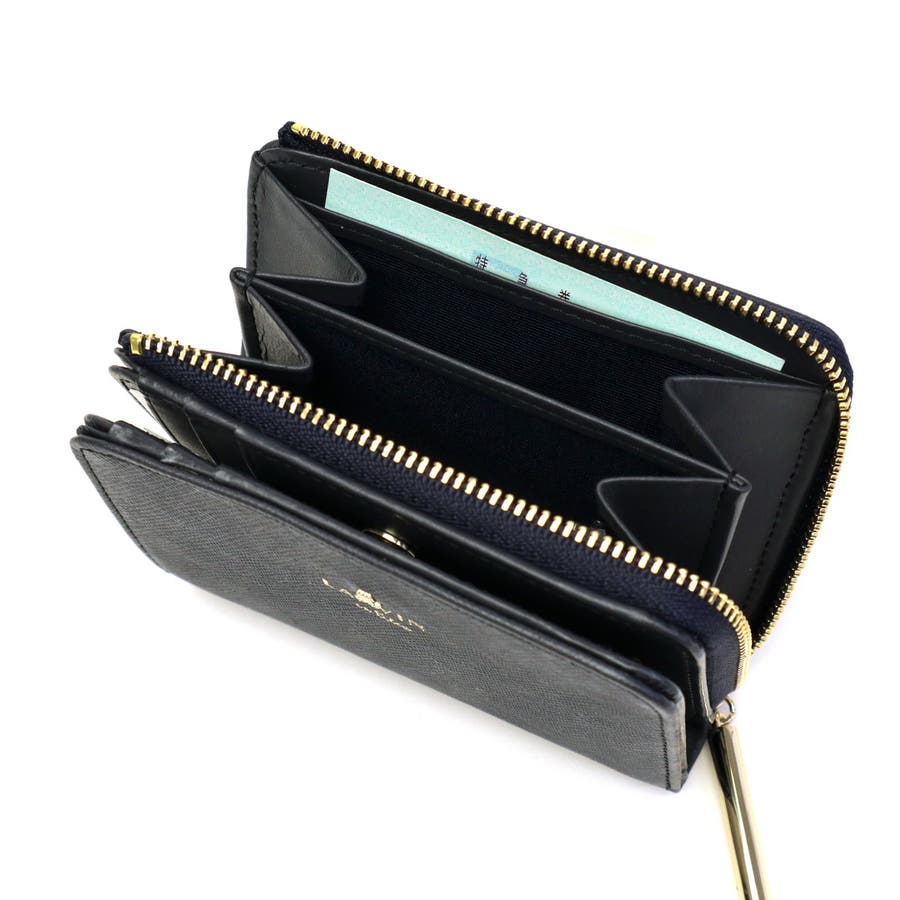 角シボの型押しをした牛革で、シンプルにロゴだけでまとめられた『リュクサンブール』シリーズの二つ折り財布。フロントにはブランドアイコンのメタルモチーフとロゴプリントをのせて、シンプルながらも重厚感を意識。色鮮やかなカラー展開と、コンパクトながら仕分け管理に長けたつくりがポイントです。