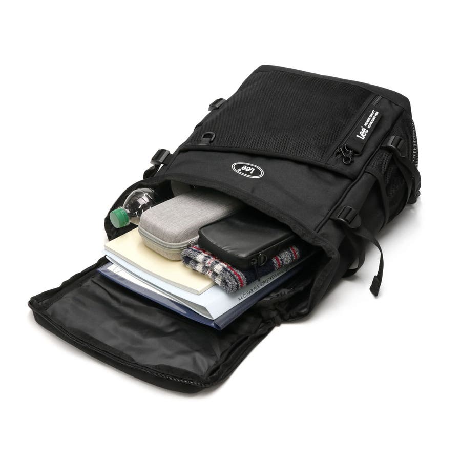 ロゴ刺繍とチャームがアクセントになった大容量リュックです。収納部は、お弁当や着替えも楽々収まる広めのマチ幅設計。さらに、用途に合わせて幅を変えることのできる仕切りを搭載しており、荷物がスッキリまとまります。背負い心地にも配慮したデザインで、荷物の多い学生さんにおすすめのアイテムです。
