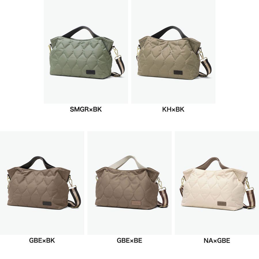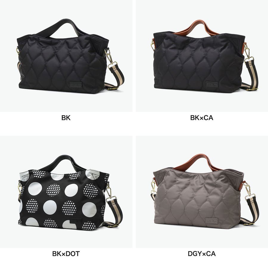 ふっくらとしたナイロンキルティングが上品で大人かわいい2WAYトートバッグ。軽量設計で肩や手への負担を軽減し、通勤・通学はもちろん旅行のサブバッグにも最適です。くったりとしたフォルムは収納力抜群で、小物整理に便利なポケットも豊富。撥水加工で雨の日も安心。幅広い世代に長く愛されるアイテムです。