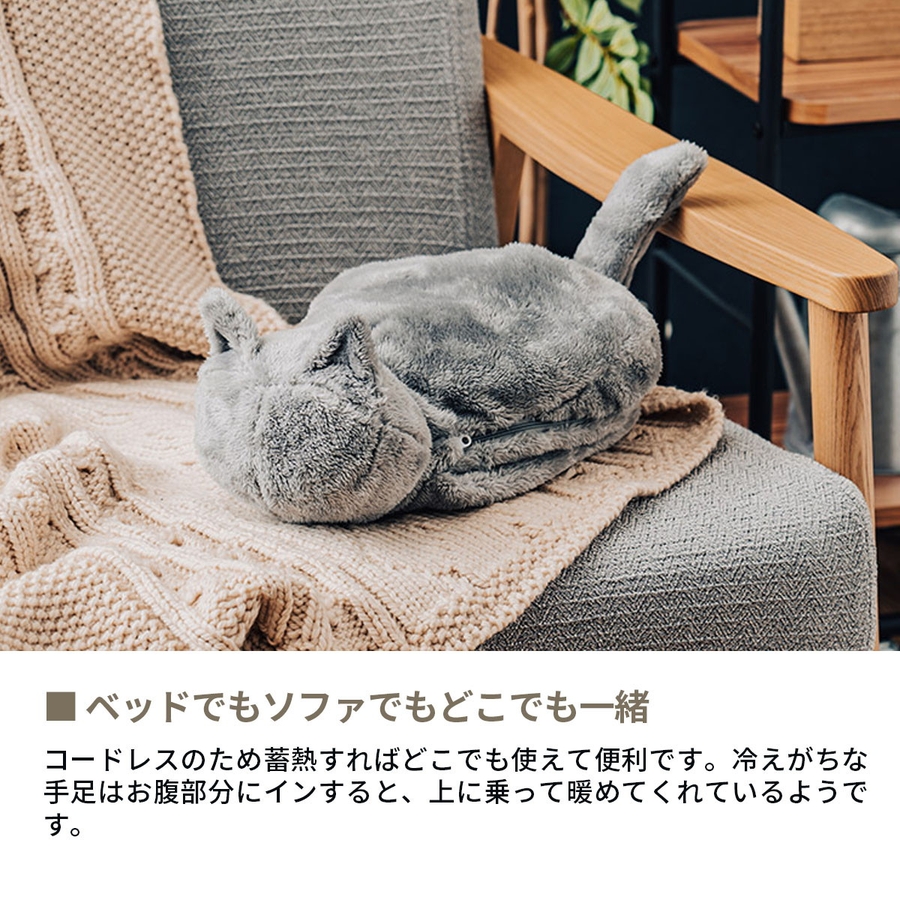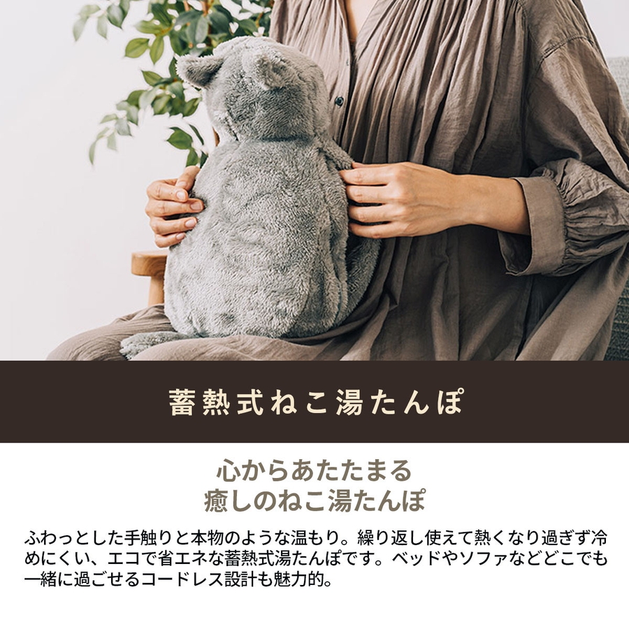 ふわっとした手触りと本物のような温もり。繰り返し使えて熱くなり過ぎず冷めにくい、エコで省エネな蓄熱式湯たんぽです。ベッドやソファなどどこでも一緒に過ごせるコードレス設計も魅力的。