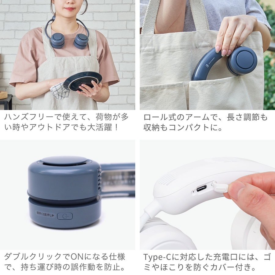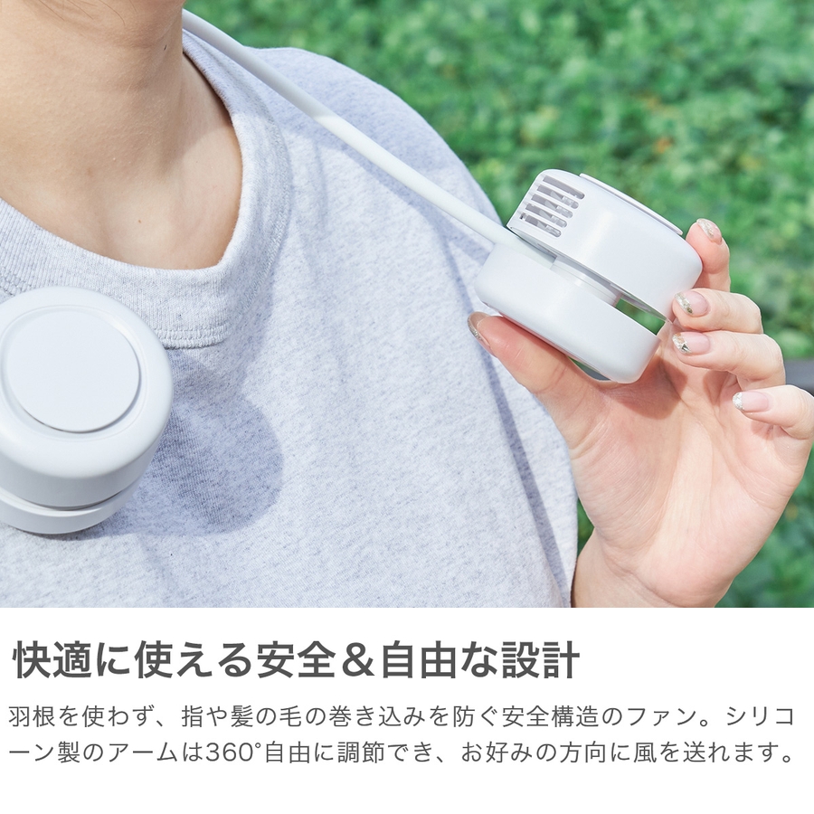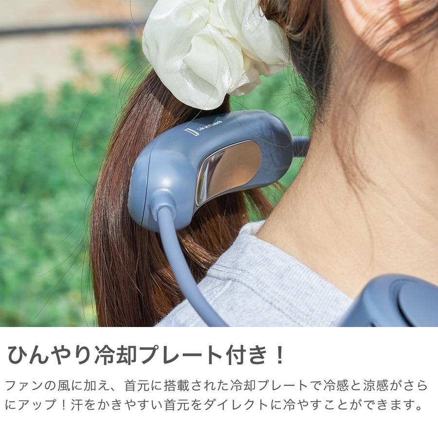 ハンズフリーで使える便利なネックファンに、冷却プレートを搭載!首のうしろをしっかり冷やせるため、ファンと併用すれば猛暑日でも汗が引くような気持ちよさが体感できます。USB充電式&アームの長さを調節できる仕様で、家族やパートナーとの共用にも便利。コンパクトに持ち運びでき、フェスやアウトドアでも大活躍します。