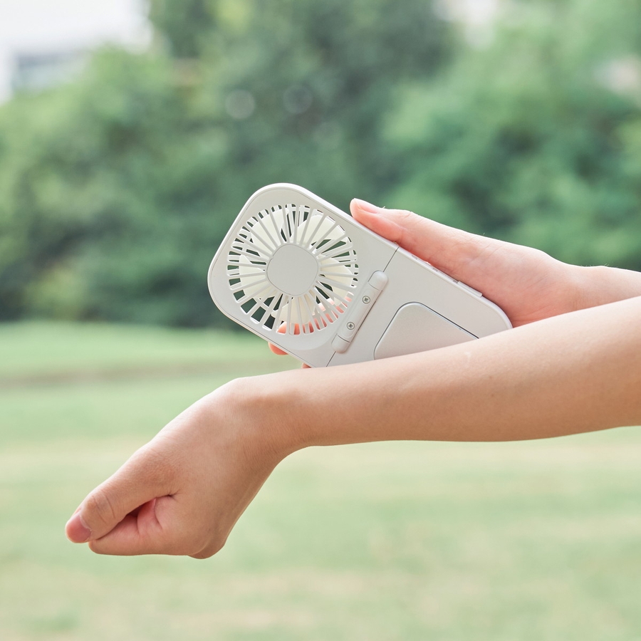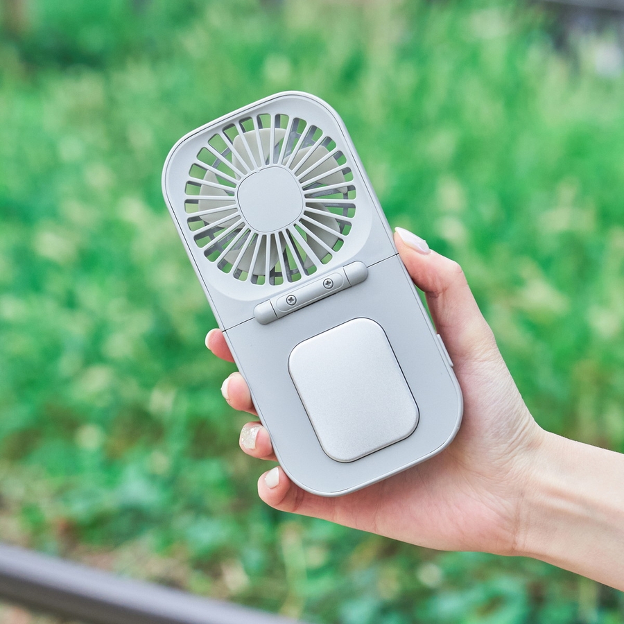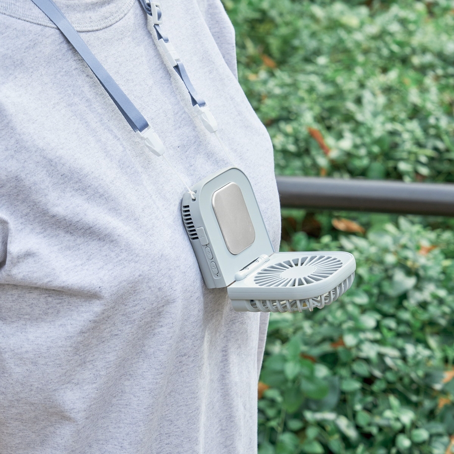 首元や手元を瞬時に冷やすペルチェプレート付きハンディファン。折りたたみ式でコンパクトに持ち運べ、外出先でもスマートに暑さ対策ができます。風量3段階・リズムモード搭載で、快適な風を好みに合わせて調節可能。通勤や野外イベントにもおすすめのアイテムです。