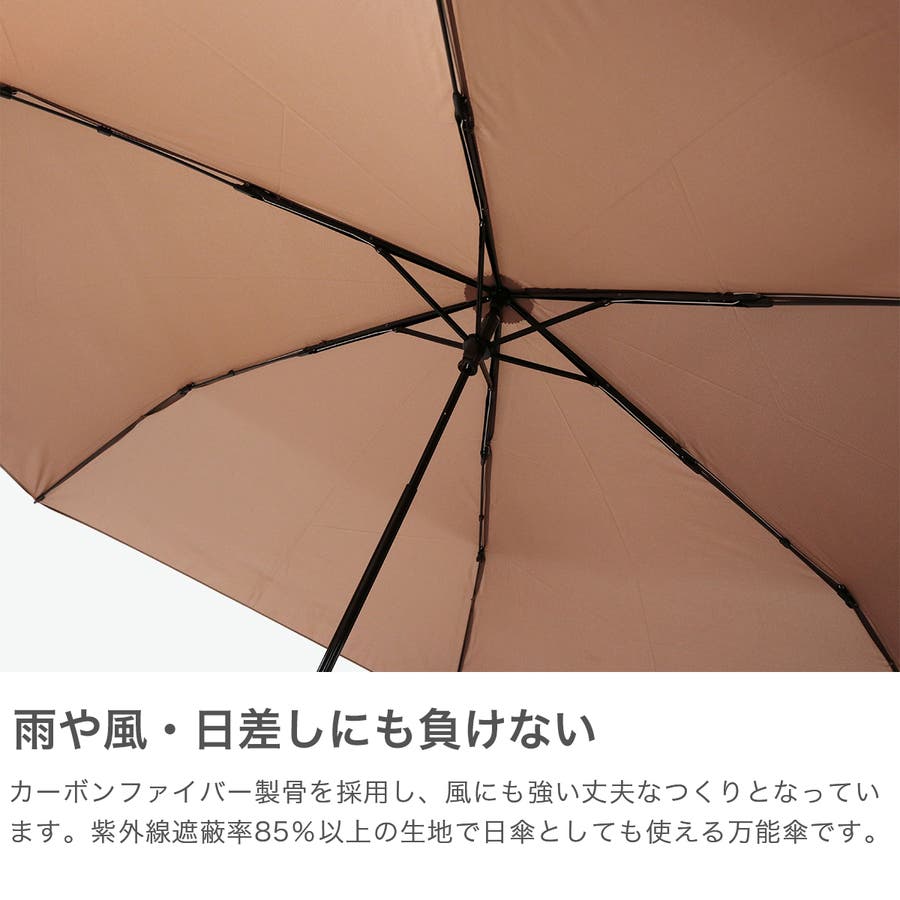 ワイドなサイズ感と業界最軽量の軽さを両立させた、晴雨兼用の折りたたみ傘。携帯性は抜群だけど開いたらサイズが小さめというタイプも多い超軽量傘ですが、こちらの商品は「軽い・大きい・丈夫・晴雨兼用」を実現したデザインとなっています。さらに、UVカット90%の生地を使用しており、強い日差しや紫外線からもしっかりと守ってくれる頼もしいアイテムです。