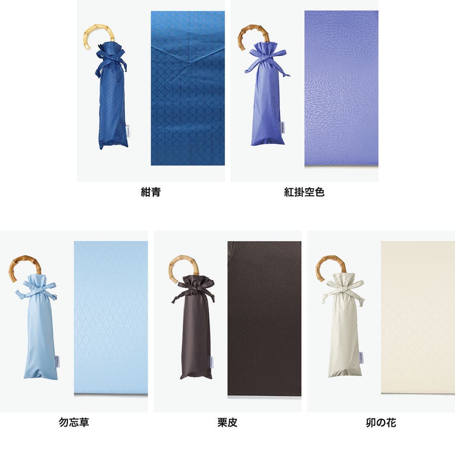 江戸小紋をイメージした、吉祥柄の江戸シリーズの折りたたみ傘。日差しをカットする面積が広い多骨タイプでありながら、軽量な仕上がりに。遮光率・UVカット率ともに100%を備えています。柔らかな雰囲気とスリムな形状で、持つだけで軽やかな雰囲気を醸し出します。