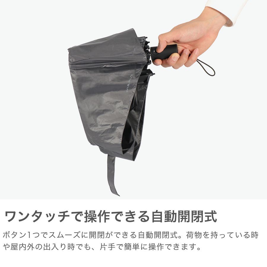 ボタンひとつでサッと開く、軽くて便利な晴雨兼用の折りたたみ傘。強風にも強くて、急な雨も強い日差しもこれ一本でOK!内側ブラックでUVカット&遮熱もばっちり。持ち歩きやすいサイズ感とシンプルな見た目で、毎日の通勤・通学にもぴったりです。
