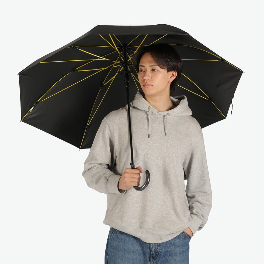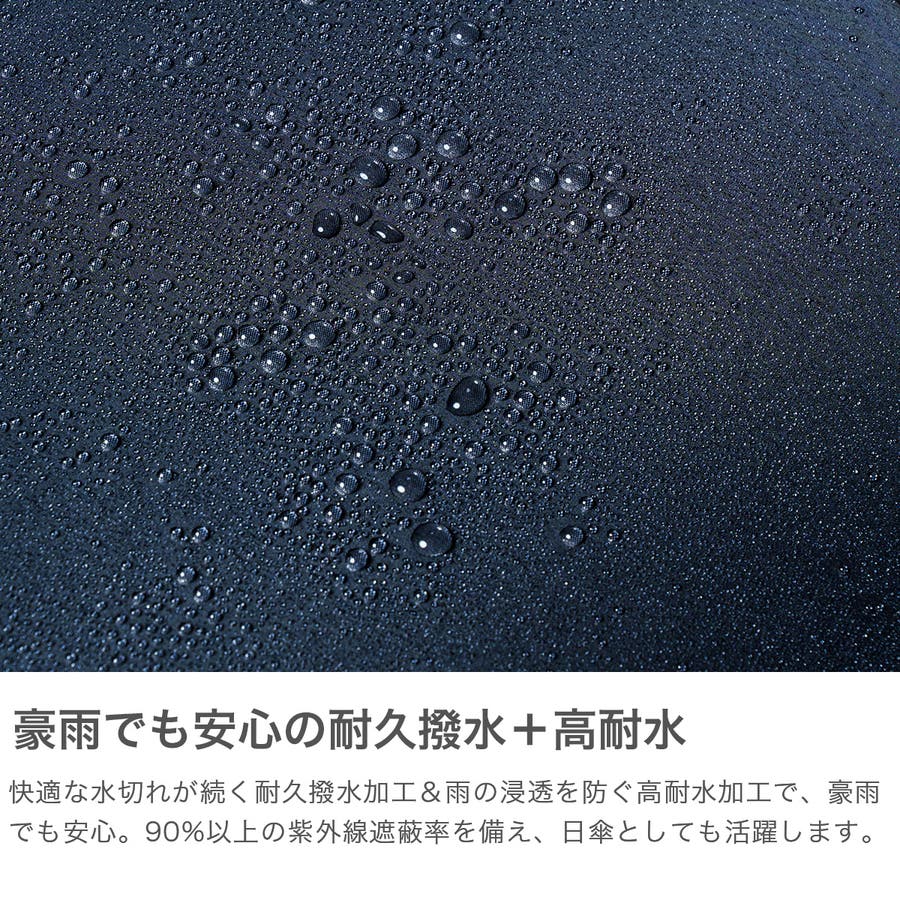 強風や突風に強いタフな構造に加え、快適な水切れが続く耐久撥水加工と雨の浸透を防ぐ高耐水加工により、強い雨に対応する豪雨モデルの長傘です。荷物も濡れにくい親骨65cmの大きめサイズで、体をしっかりカバーします。UVカット90%以上で晴れの日にも対応。シンプルなデザインで、毎日の通勤・通学に活躍します。