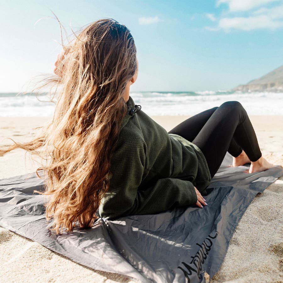 手のひらサイズに収納できるポケットブランケット。特許取得の「Easy-Packパターン」がガイドラインとなり、簡単に折りたためます。高品質で耐水性・耐久性に優れた素材を使用し、どこでも清潔でドライな状態をキープ。大人2?4人で使えるゆったりサイズながら、強風時に便利な超軽量ペグや砂や石を入れて重しにできるサンドポケット付きで、旅行やアウトドアでも安心のアイテムです。