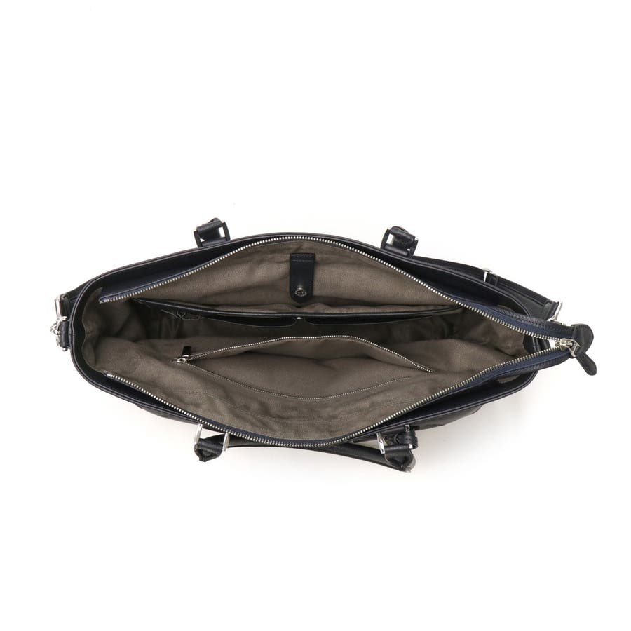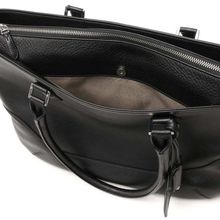 シンプルでシックなコレクションを揃えた『Maiden Voyage』シリーズの2WAYトートバッグ。こちらは、「使いやすくシンプルである」という価値観を美しさとして捉え、デザインを追及した究極の定番アイテムです。美しいシボが魅力のシュリンクレザーを使用し、柔らかで上質な質感が高級感漂う仕上がりとなっています。
