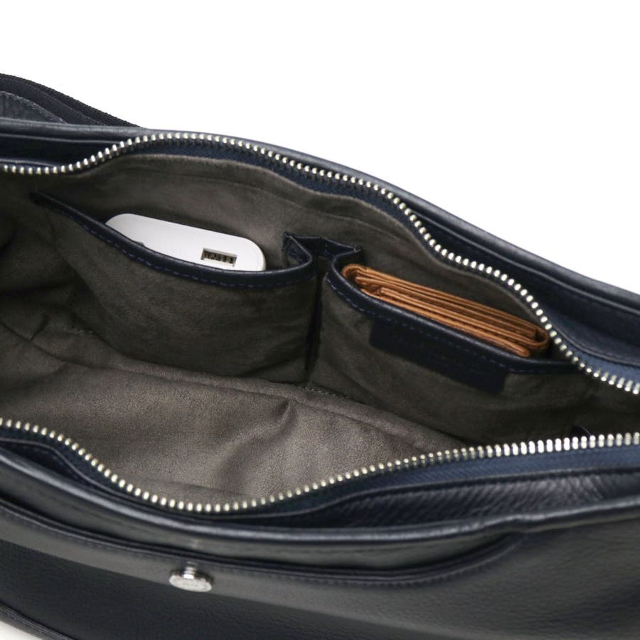 完成した船(バッグ)が世に出ていくというイメージから処女航海の名をつけた『Maiden Voyage』シリーズ。こちらは、しなやかなシュリンクレザーが身体にフィットして心地よいショルダーバッグです。必要なアイテムをコンパクトに持ち歩けるのが魅力的。内側にも外側にも便利なポケットを設けて、スマホなどの頻繁に使用する小物類もスムーズに取り出せます。