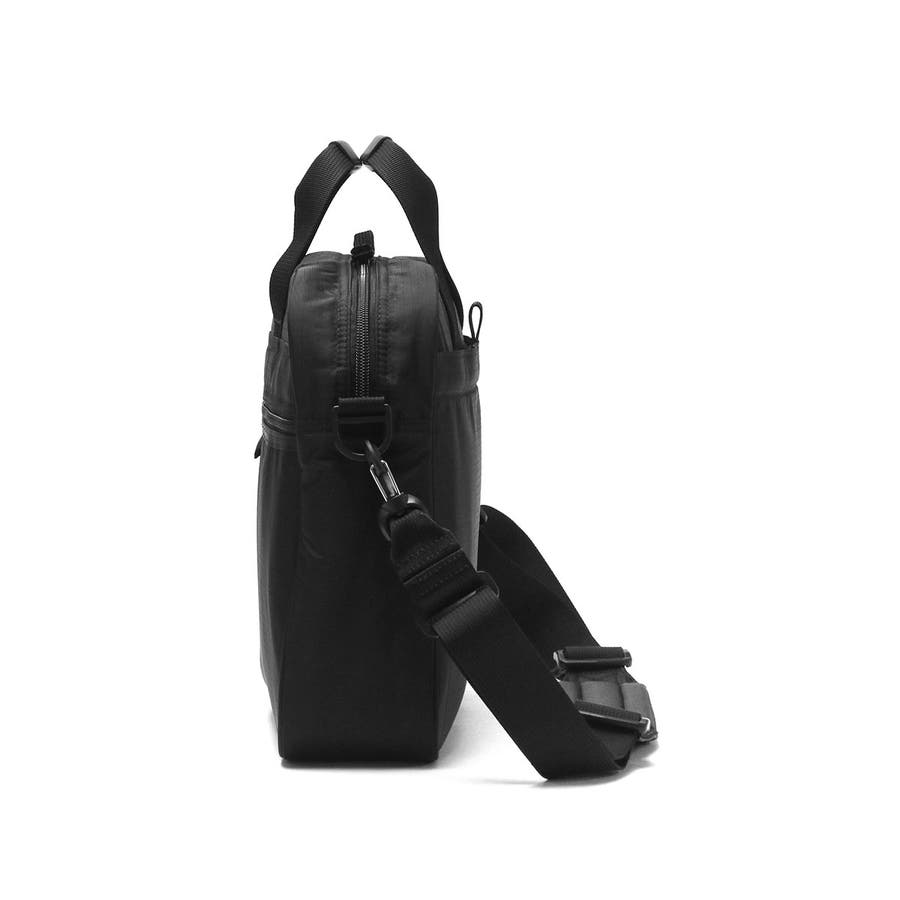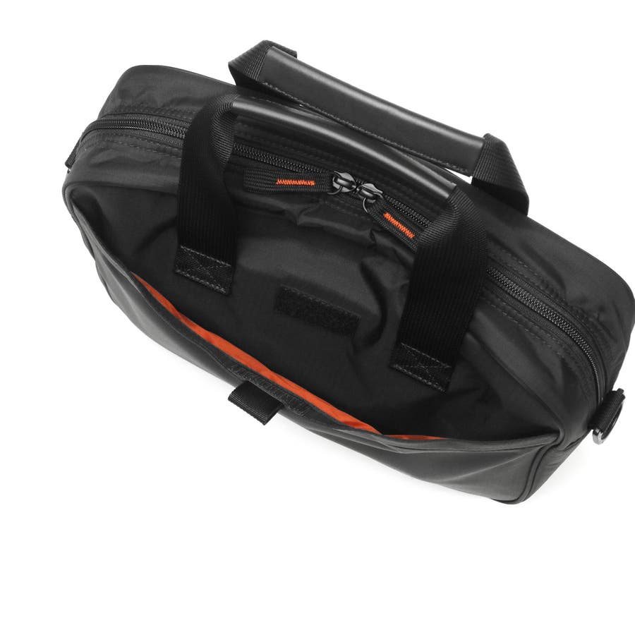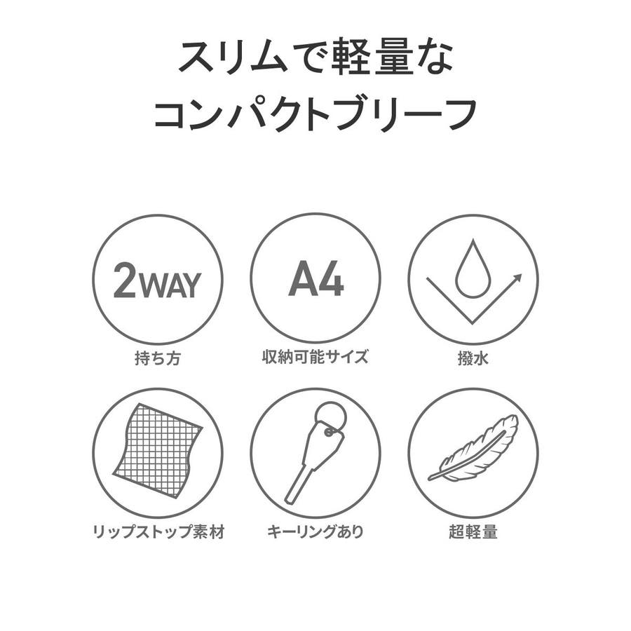 重量わずか430gと驚異的な軽さを誇る、コンパクトブリーフケース。本体は、シンプルな構造でありながらA4サイズが収まる実用的な収納力を備えています。また撥水加工を施し、ハードな使用にも耐えうる耐久性の高いナイロンを採用。ビジネスシーンをしっかりサポートしてくれる、機能性抜群の設計が魅力です。