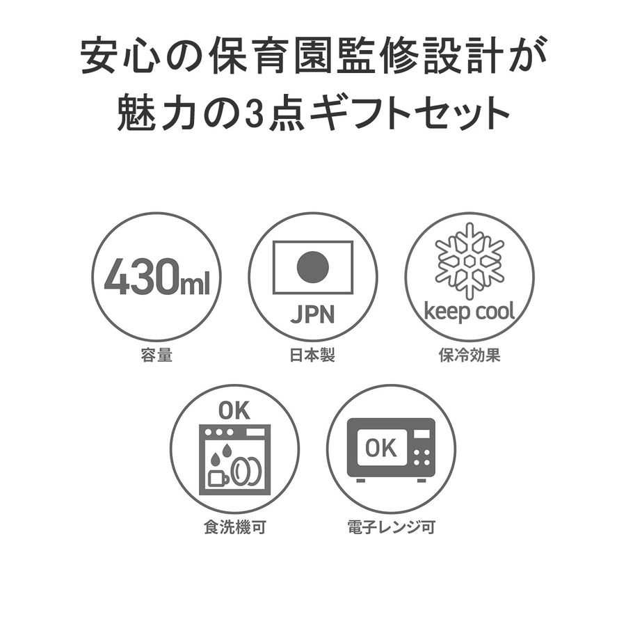 「食育」「安心・安全」の観点から保育園監修の元、作り上げた子ども用のランチアイテムを展開する『mii』。こちらは、ランチボックスと、カトラリー、ランチバッグのギフトセット。ランチタイムに必要なグッズが揃っているので、入園や出産の祝いや贈り物に喜んでいただけること間違いなしです。貰って嬉しい可愛らしいルックスだけでなく、お子様の使いやすさや、お手入れのしやすさにまで配慮したデザインが魅力となっています。