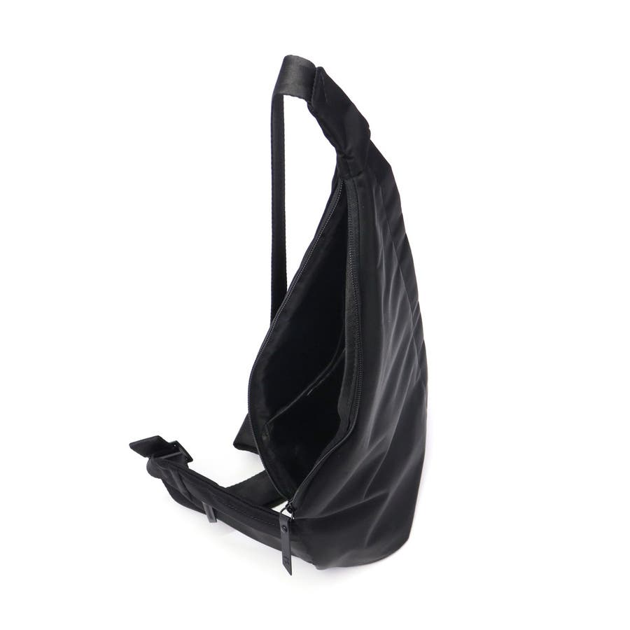 モードファッションとストリートテイストの融合を志向するシリーズ『SIERRA(シエラ)』のワンショルダーバッグです。正面、裏面だけでなくベルトの付け根部分にもファスナー付きポケットを用意し、デザインだけでなく使いやすさもしっかりと確保。黒で統一されたモードな外見と見た目以上の収納力で、男女問わずお使い頂けるバッグです。