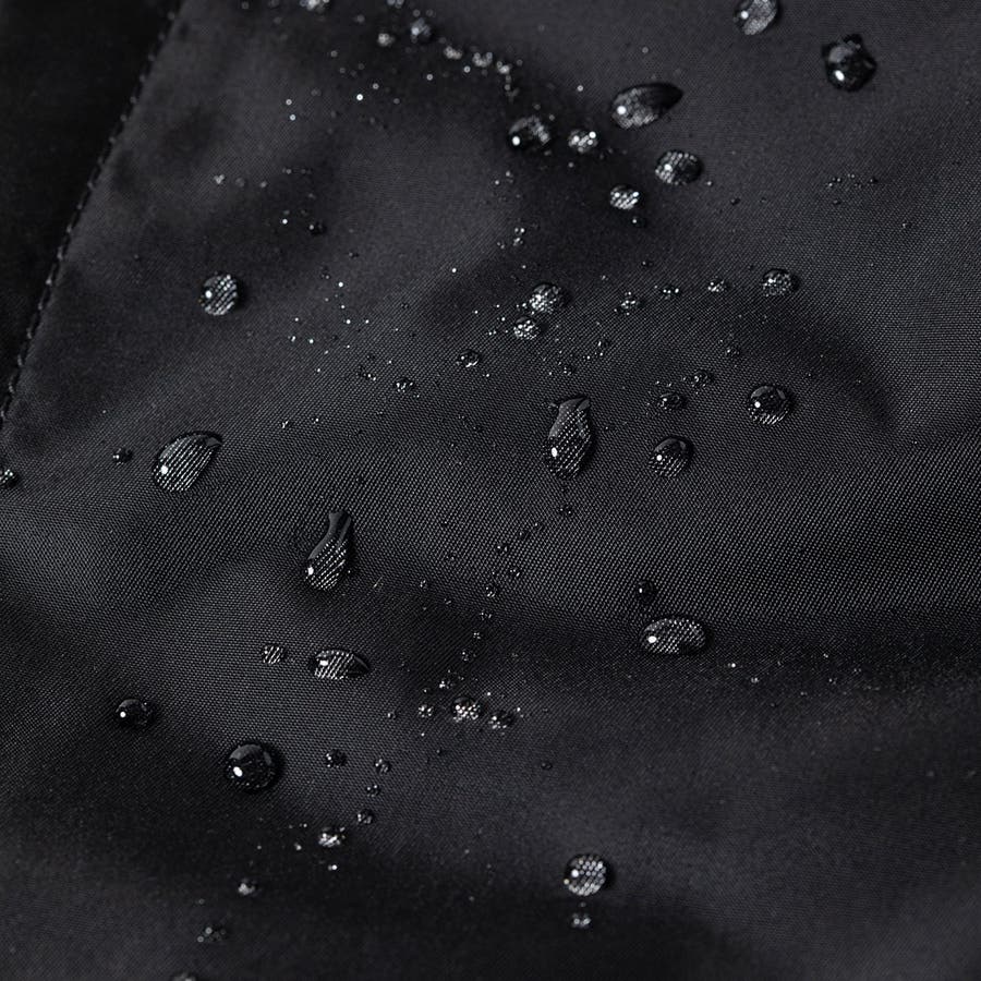 メイン素材には高密度ナイロン生地N/ROBICを使用。一般のナイロンツイルと比べ経糸を細くしている為、サテン織とは異なる落ち着いた光沢とドレープ感が出るようになっています。また、ほつれ止めとしてソフトアクリルコーティングを施しています。その他の加工として表面に弱撥水加工を施しており汚れ等が付きにくい素材となっています。