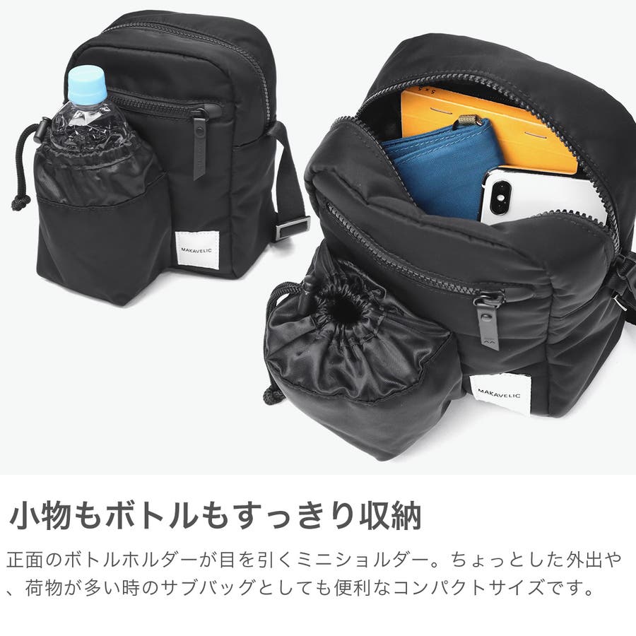 モードとストリートが融合したデザインが魅力の『SIERRA(シエラ)』シリーズの、ボトルホルダー付きショルダーバッグ。光沢感のあるN/ROBICナイロンを採用し、上質で洗練された印象を演出。高い機能性も兼ね備えたハイエンドラインです。バッグの中でかさばりがちなペットボトルなどを定位置管理することで、外出時の荷物をスマートに整えます。