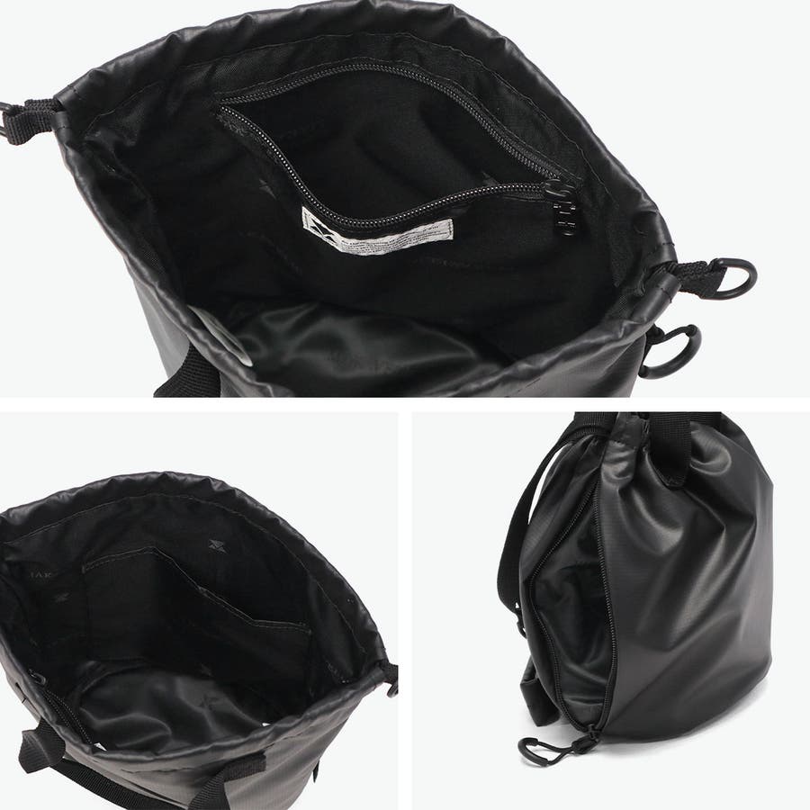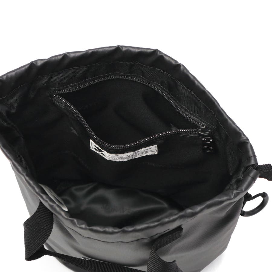 ミリタリーやアウトドアのエッセンスを加えたタフなデザインが特徴の『RICO』シリーズ。こちらは、巾着デザインの2WAYショルダーバッグ。ショルダーストラップを取り外せば、巾着バッグとしても使え、外側サイドに設けたポケットはスマホや小物を収納するのに便利。高い耐久性と防水性を持つリップストップ生地は、撥水性だけでなく引き裂けや摩耗にも強く、アウトドアからデイリーユースまで活躍。モノトーンのシンプルな印象とモード感を融合させた、ユニセックスでお使い頂けるアイテムです。
