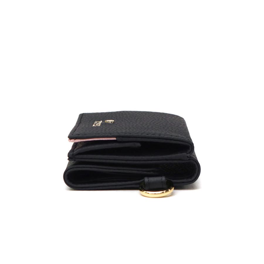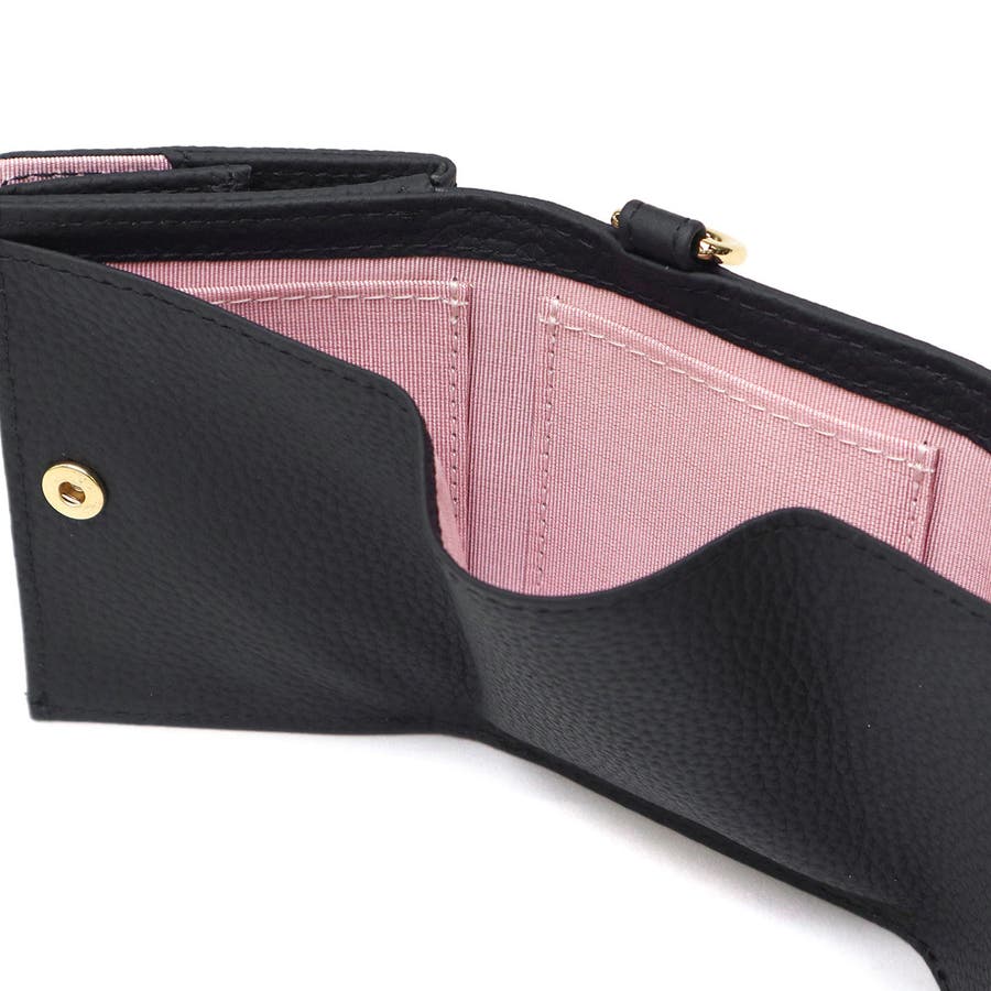 本革を使用したコンパクトな三つ折り財布。ハートのスタッズと箔ロゴプリントのシンプルなデザインに、小銭入れの内側には配色を取り入れ、開いたときにさりげないおしゃれを演出してくれます。お札やカード類など必要最低限のアイテムが収納可能で、トレンドの小さめバッグにもすっきり収まるサイズ感。使うほどに味わいが増す本革製で、日常使いにも特別なギフトにも最適な一品です。