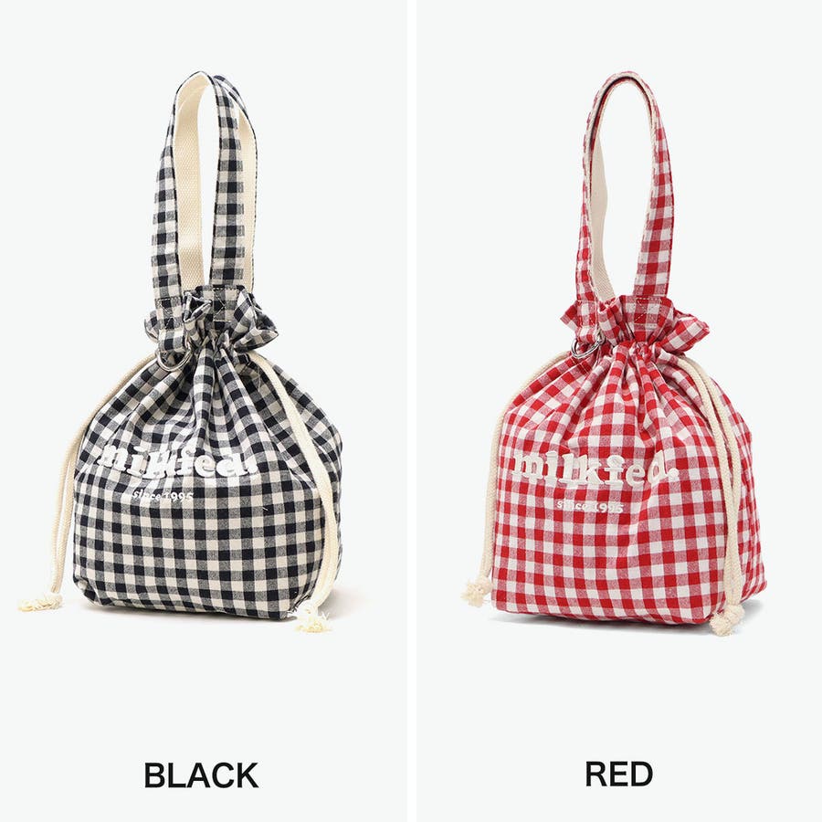 ギンガムチェックにブランドロゴの刺繍がポイントのランチバッグ。開閉がしやすく、絞った時のフォルムが可愛い巾着型です。ランチバッグとしてはもちろん、普段使い用のバッグとしても◎。コーデのアクセントになる愛らしいデザインに仕上がっています。