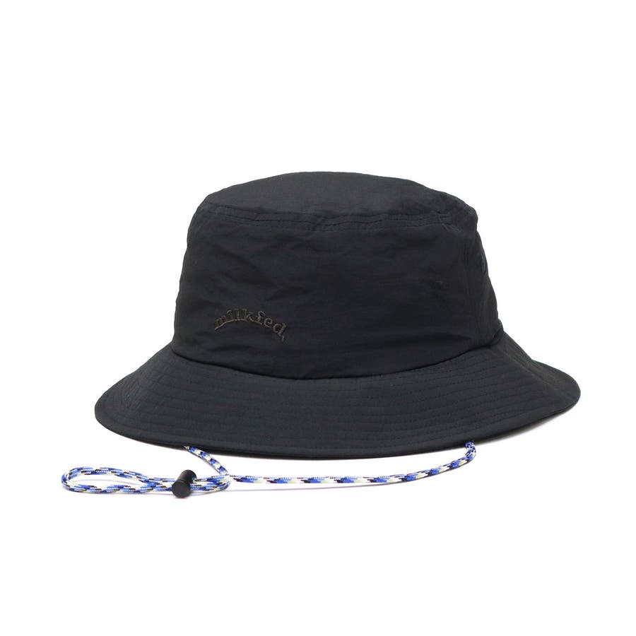MILKFED.のロゴ刺繍入りバケットハットです。UVカット率99.9%・UPF55%で紫外線対策に最適。吸水速乾・撥水・消臭・抗菌機能など頼れる機能が満載です。取り外し可能なマルチカラーコード付きで、アウトドアや旅行にぴったりのアイテムです。