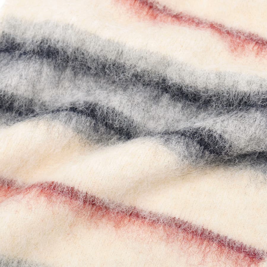 マルチボーダーとフェザーの起毛感が贅沢な一枚。落ち着いたコーデになりがちな冬の装いに、ミックスカラーが程よい彩りを添えてくれます。大きめサイズなので、ちょっとボリュームをプラスしたいときにも最適。首元の存在感でバランスの良いスタイリングが叶います。