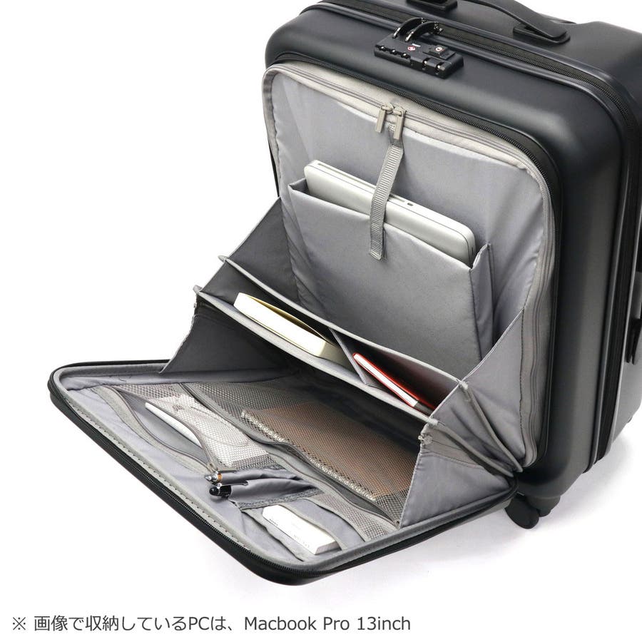シンプルなデザインとカラーリングがユニセックスに持ちやすく、新幹線移動に最適な50Lのキャリーケース。フロントオープン構造で、空港やホテルなどの狭い場所でも荷物の取り出しがスムーズに行えます。15インチ対応のPC収納や、キャスターロックなど機能性も充実しており、ビジネスもバカンスもスマートにこなすアイテムとなっております。