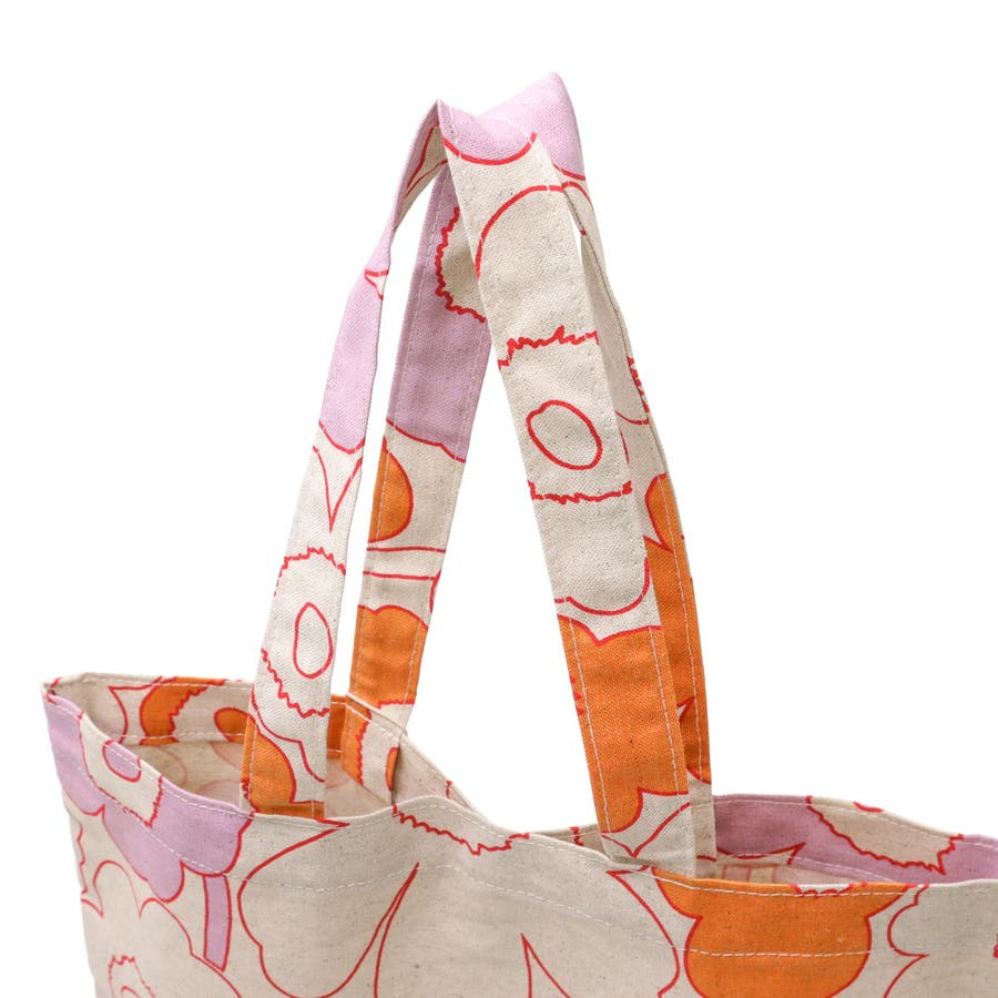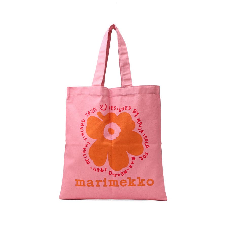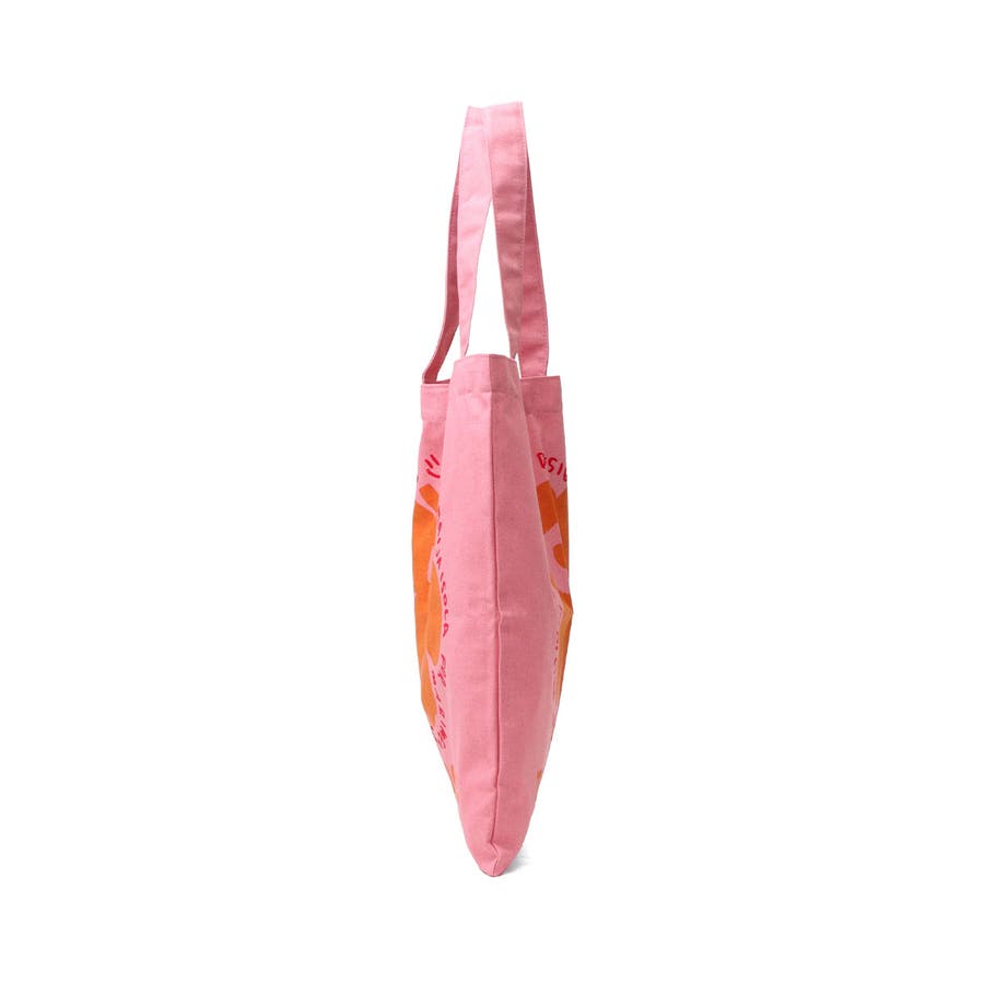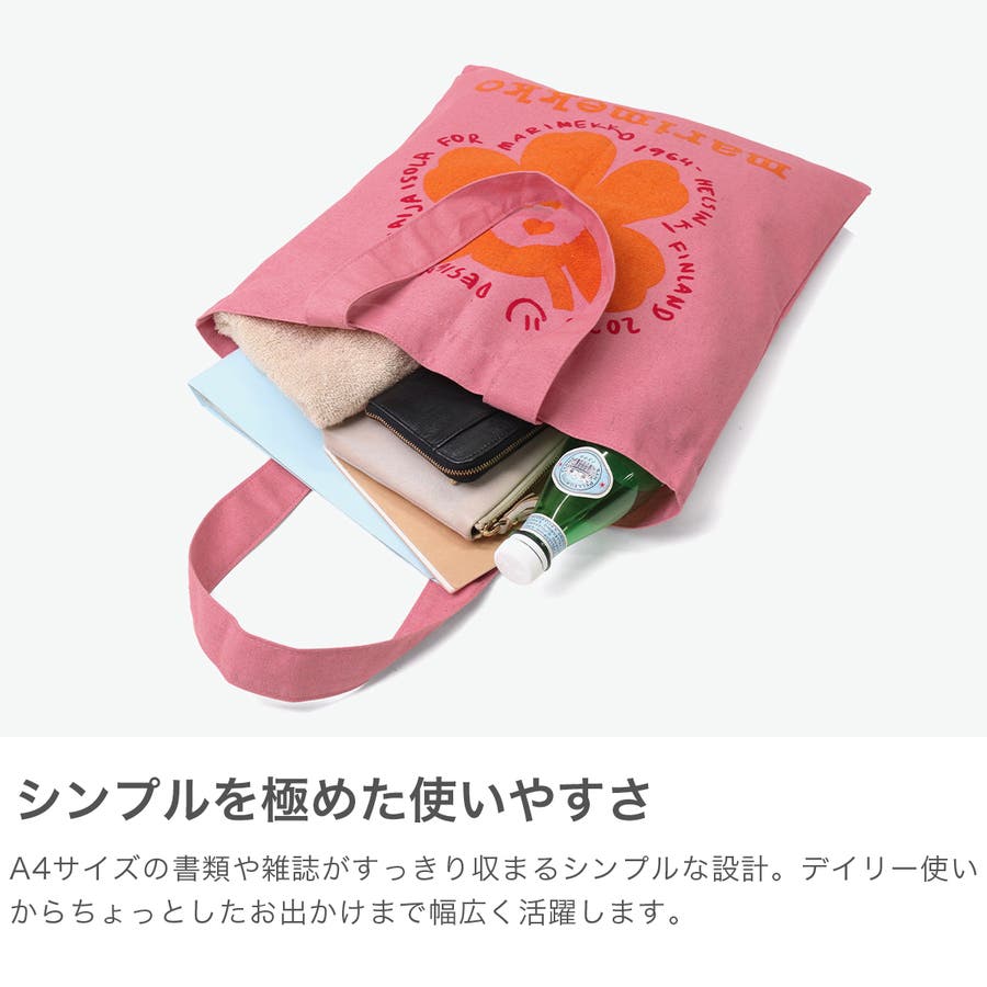 独創的なプリントや色使いが可愛らしいトートバッグ。肩掛け・手持ちもできる使いやすいハンドルに、ちょっとした衣類なども収納できる大きめのサイズ感で、通学用トートや休日のお出かけなど幅広いシーンで活躍します。畳んでかさばらずに収納できるため、旅行時にもぴったり。コーディネートのアクセントにもなる印象的なアイテムです。