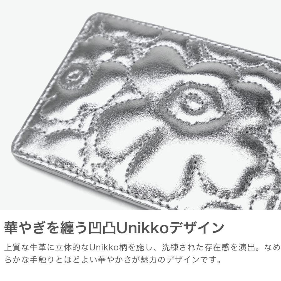 凹凸のある"Unikko柄"がでデザインされたエレガントなカードケース。手触りの良いレザー仕様でコンパクトにカード類を持ち歩きたい方にぴったりです。持つだけで華やぐような柄とカラーリングで、プレゼントにもおすすめのアイテムに仕上がっています。