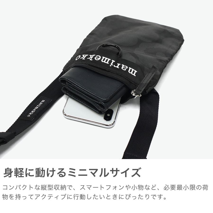 『marimekko』らしい"Unikko柄"がシックでカジュアルな仕上がりのミニショルダーバッグ。軽やかで扱いやすいリサイクルポリエステル生地を採用したサステナブルなアイテム。スマートフォンを入れたり、最小限の荷物でアクティブに行動したい方にぴったりのコンパクトなサイズ感となっています。